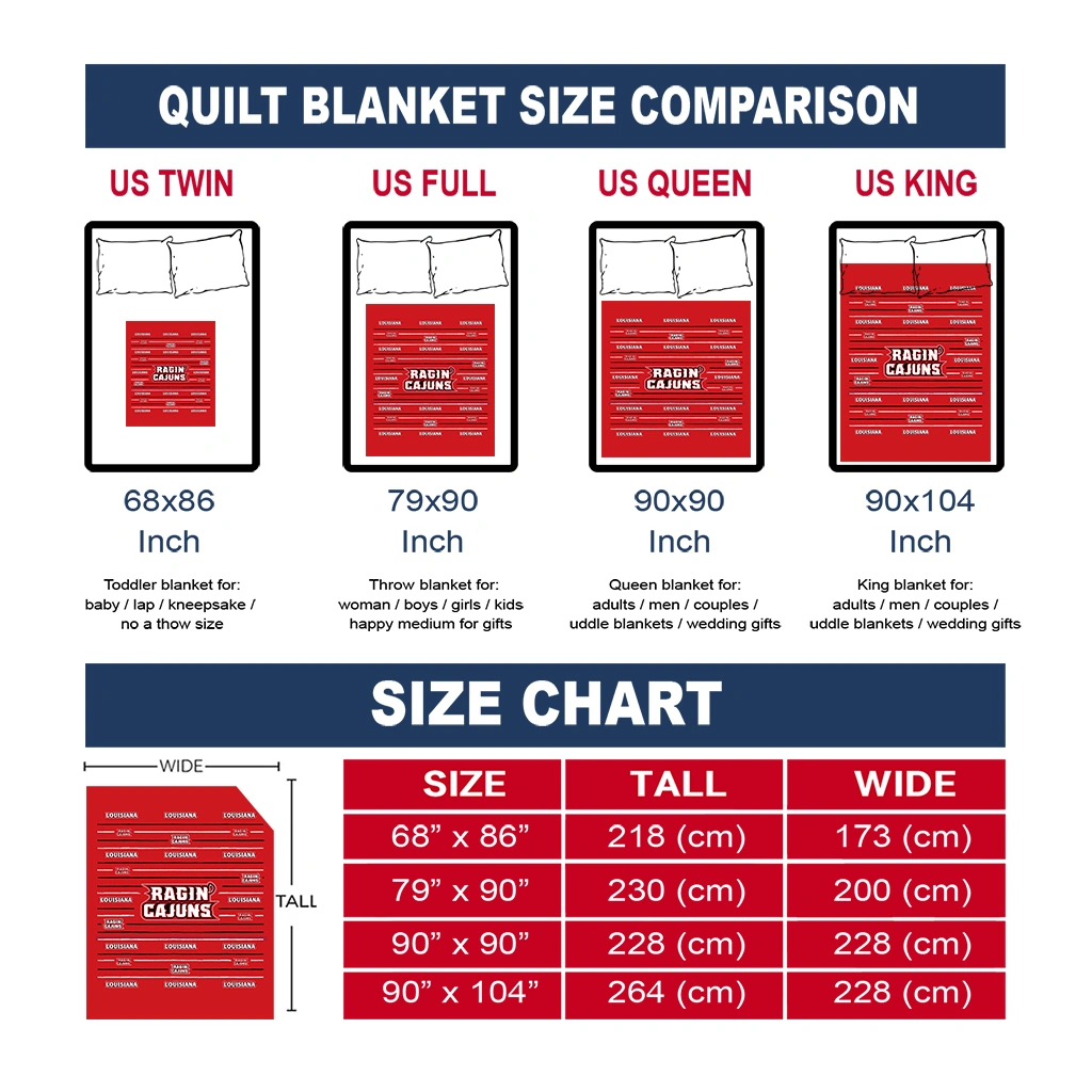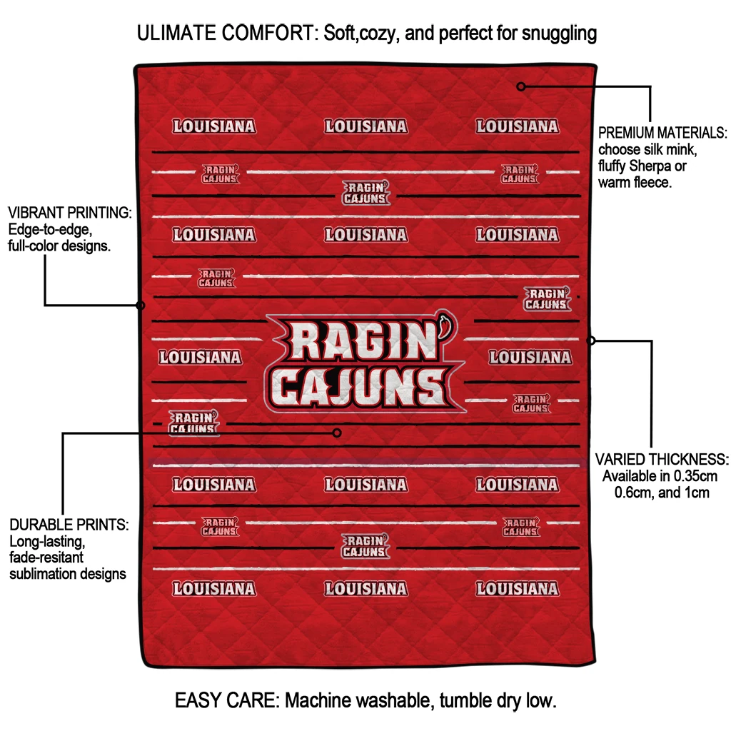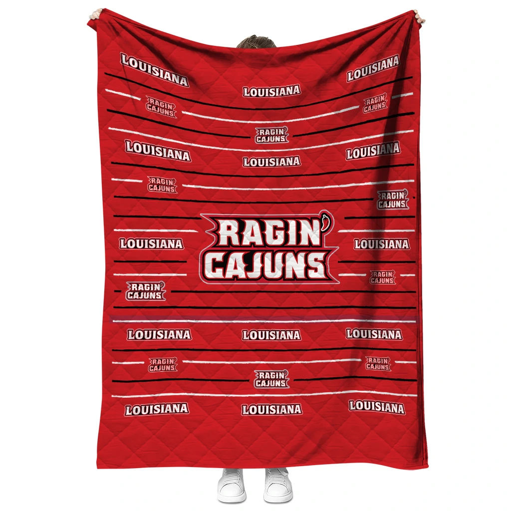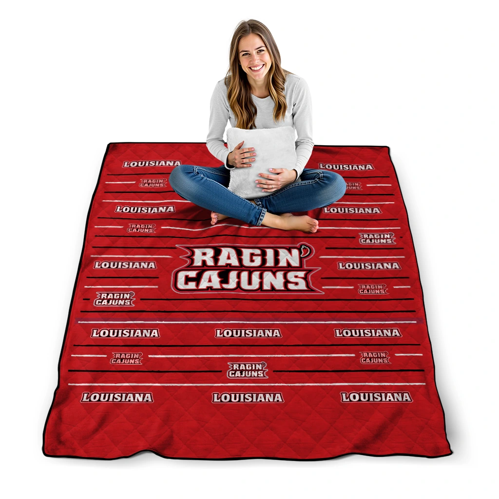 Wrap yourself in warmth and pride with the Louisiana Ragin' Cajuns Handdrawn Stripes Red Quilt Blanket from the Louisiana Ragin' Cajuns Blankets collection at Yes That Blanket. Made from 100% premium quilting-weight polyester blended with a touch of microfiber, this quilt offers a smooth, soft finish you’ll love. Choose between two quilting styles—Stipple or Diagonal—and enjoy the comfort of a cotton-filled layer inside that adds extra coziness for every season. The border is available in classic black or white, giving your design a clean, timeless edge.