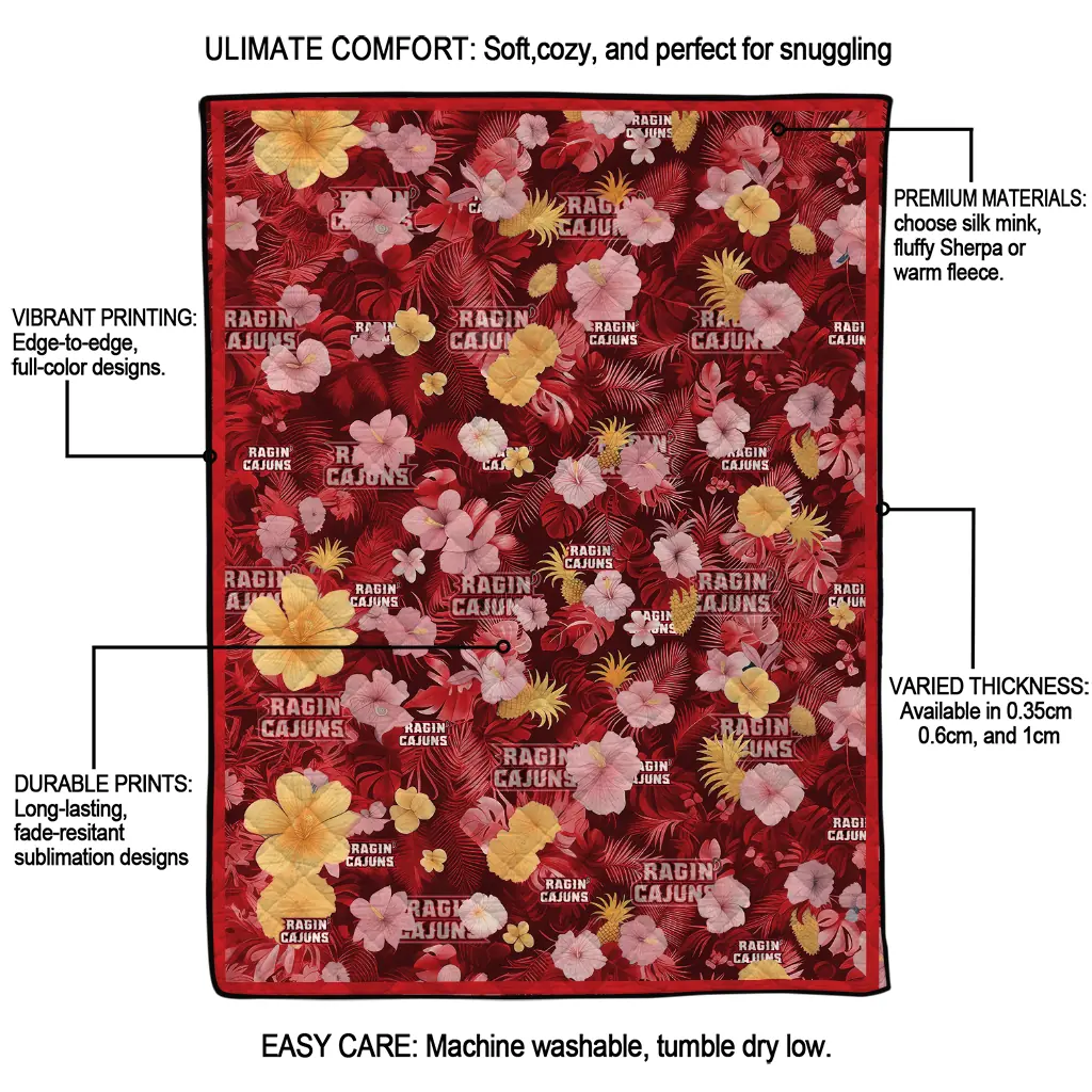 Wrap yourself in warmth and pride with the Louisiana Ragin’ Cajuns Hibiscus Foliage Red Quilt Blanket from the Louisiana Ragin’ Cajuns Blankets collection at Yes That Blanket. Made from 100% premium quilting-weight polyester blended with a touch of microfiber, this quilt offers a smooth, soft finish you’ll love. Choose between two quilting styles—Stipple or Diagonal—and enjoy the comfort of a cotton-filled layer inside that adds extra coziness for every season. The border is available in classic black or white, giving your design a clean, timeless edge.