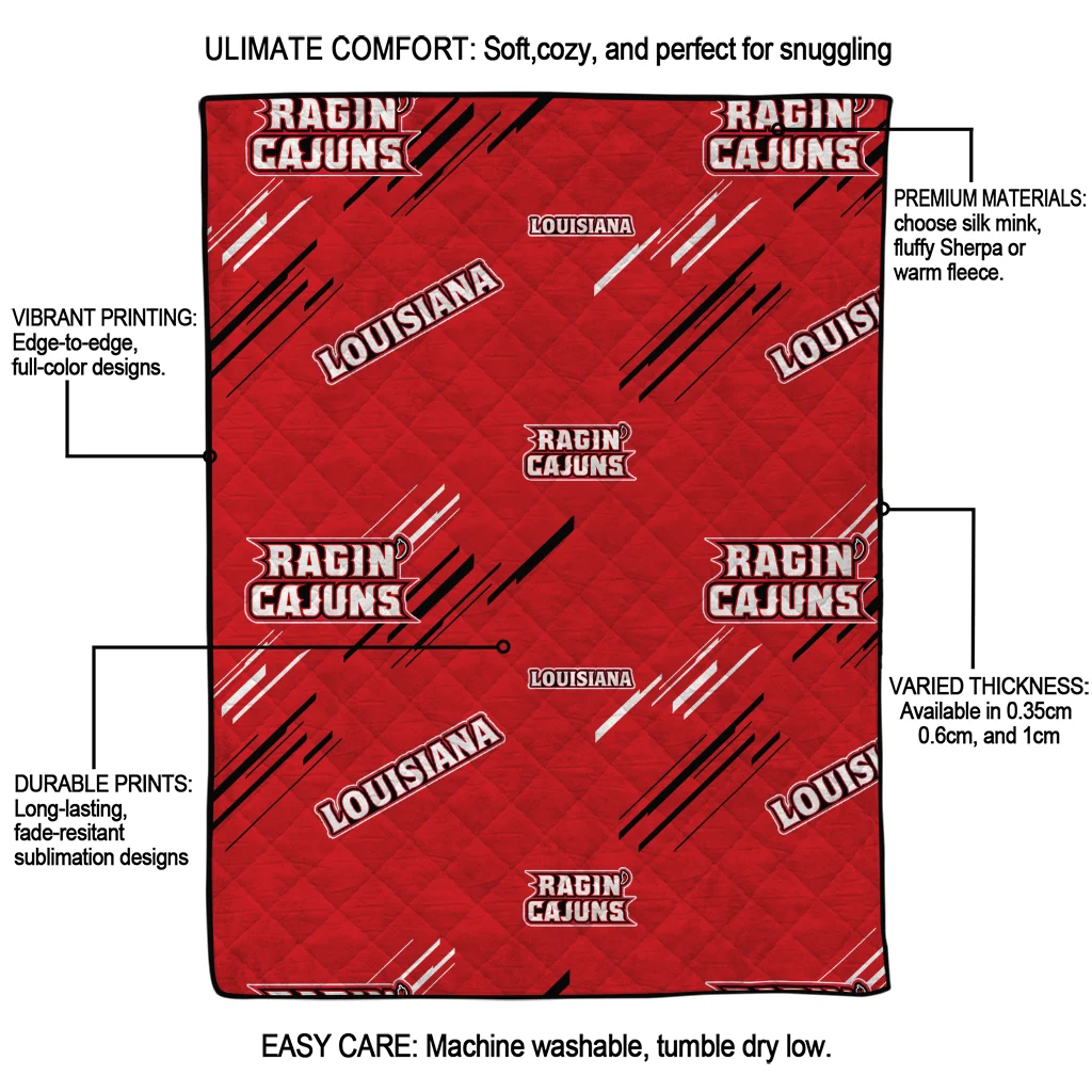 Wrap yourself in warmth and pride with the Louisiana Ragin' Cajuns Sketch Lines Red Quilt Blanket from the Louisiana Ragin' Cajuns Blankets collection at Yes That Blanket. Made from 100% premium quilting-weight polyester blended with a touch of microfiber, this quilt offers a smooth, soft finish you’ll love. Choose between two quilting styles—Stipple or Diagonal—and enjoy the comfort of a cotton-filled layer inside that adds extra coziness for every season. The border is available in classic black or white, giving your design a clean, timeless edge.
