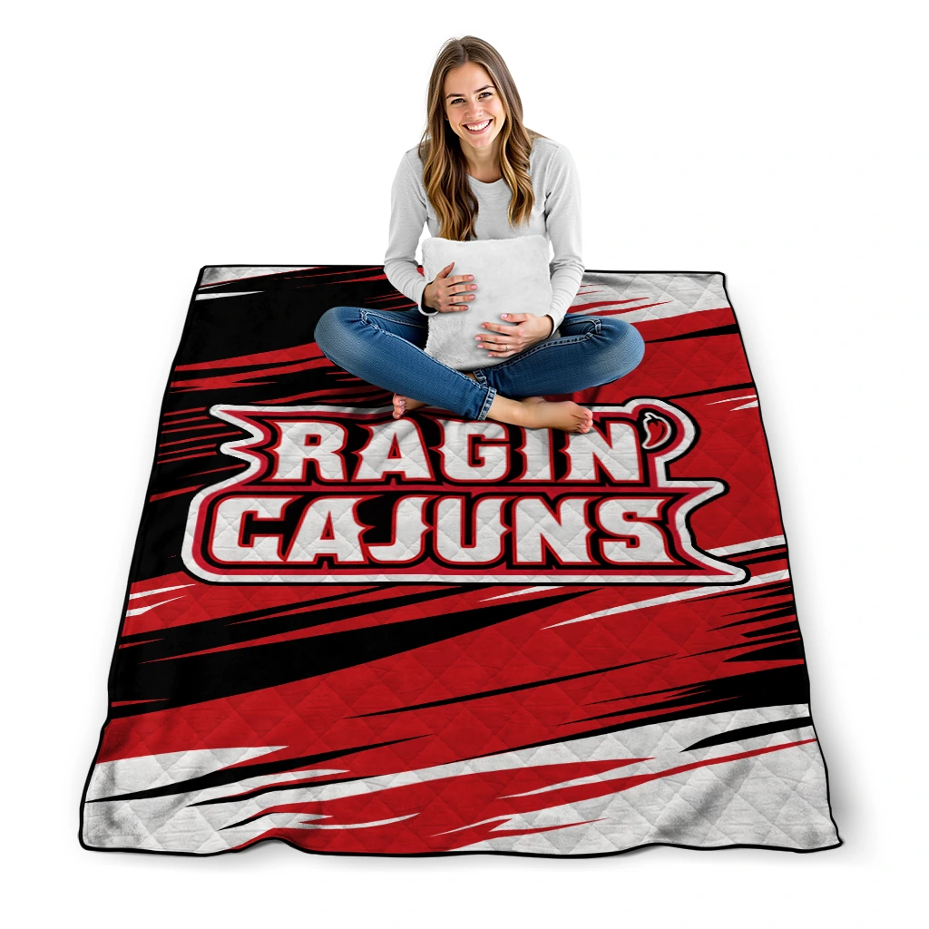 Wrap yourself in warmth and pride with the Louisiana Ragin’ Cajuns Wild Lines Red White Quilt Blanket from the Louisiana Ragin’ Cajuns Blankets collection at Yes That Blanket. Made from 100% premium quilting-weight polyester blended with a touch of microfiber, this quilt offers a smooth, soft finish you’ll love. Choose between two quilting styles—Stipple or Diagonal—and enjoy the comfort of a cotton-filled layer inside that adds extra coziness for every season. The border is available in classic black or white, giving your design a clean, timeless edge.