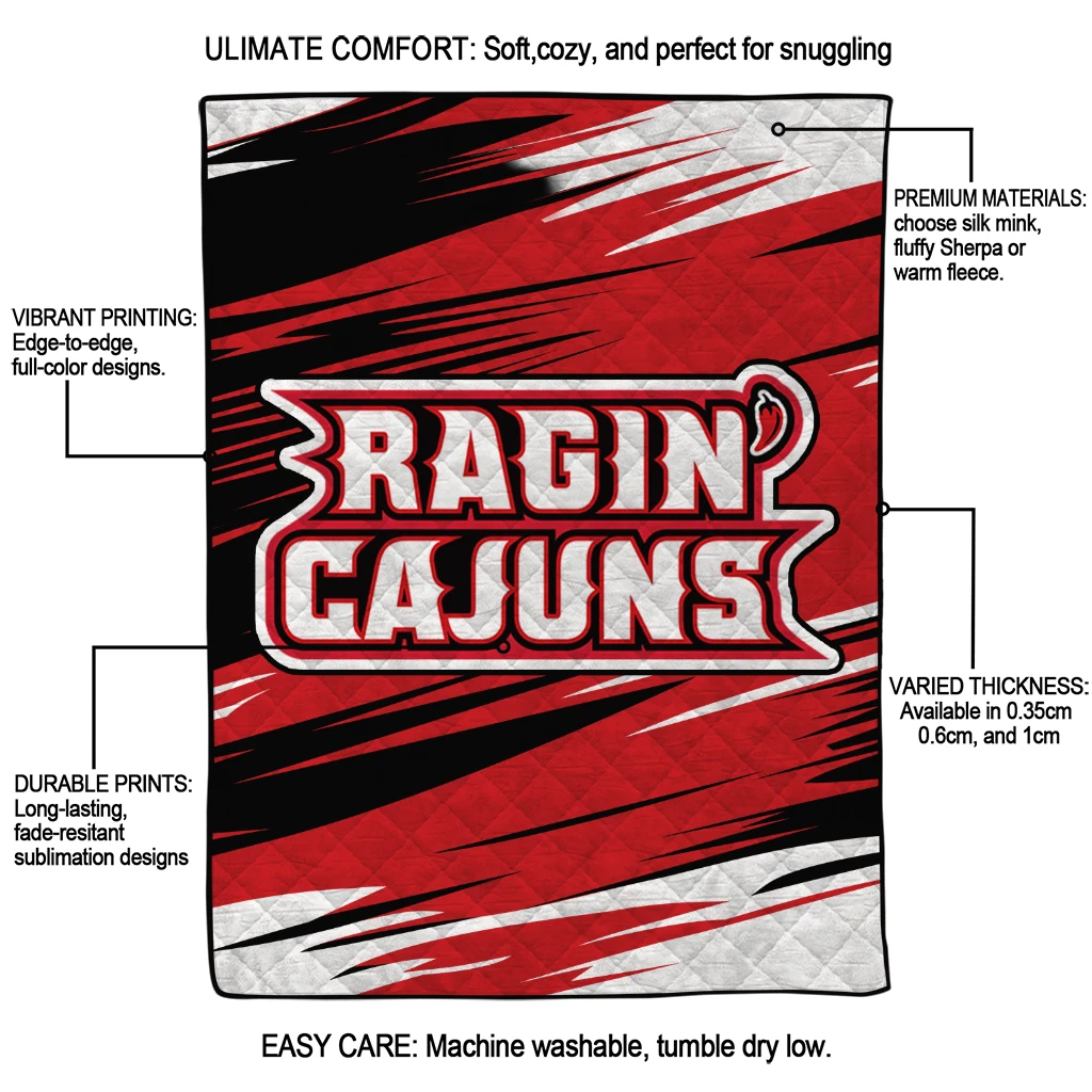 The Louisiana Ragin’ Cajuns Wild Lines Red White Quilt Blanket is more than a blanket—it’s everyday comfort, thoughtfully made. Crafted from premium quilting fabric with a soft microfiber touch, it offers a smooth hand-feel and lasting coziness. Layered quilting with a cotton-filled core provides adaptable warmth across seasons while maintaining a clean, tailored look on your bed or sofa.