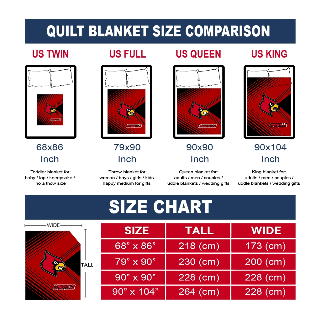 Wrap yourself in warmth and pride with the Louisville Cardinals Arrow Layers Red Quilt Blanket from the Louisville Cardinals Blankets collection at Yes That Blanket. Made from 100% premium quilting-weight polyester blended with a touch of microfiber, this quilt offers a smooth, soft finish you’ll love. Choose between two quilting styles—Stipple or Diagonal—and enjoy the comfort of a cotton-filled layer inside that adds extra coziness for every season. The border is available in classic black or white, giving your design a clean, timeless edge.