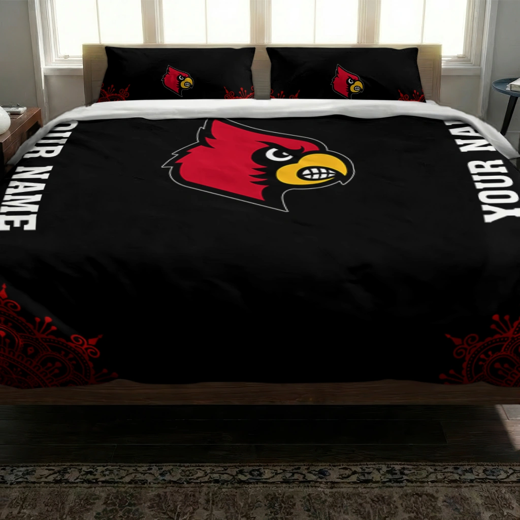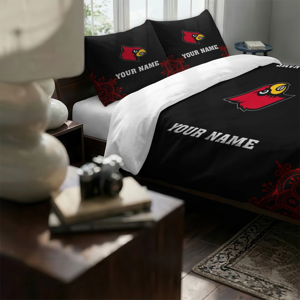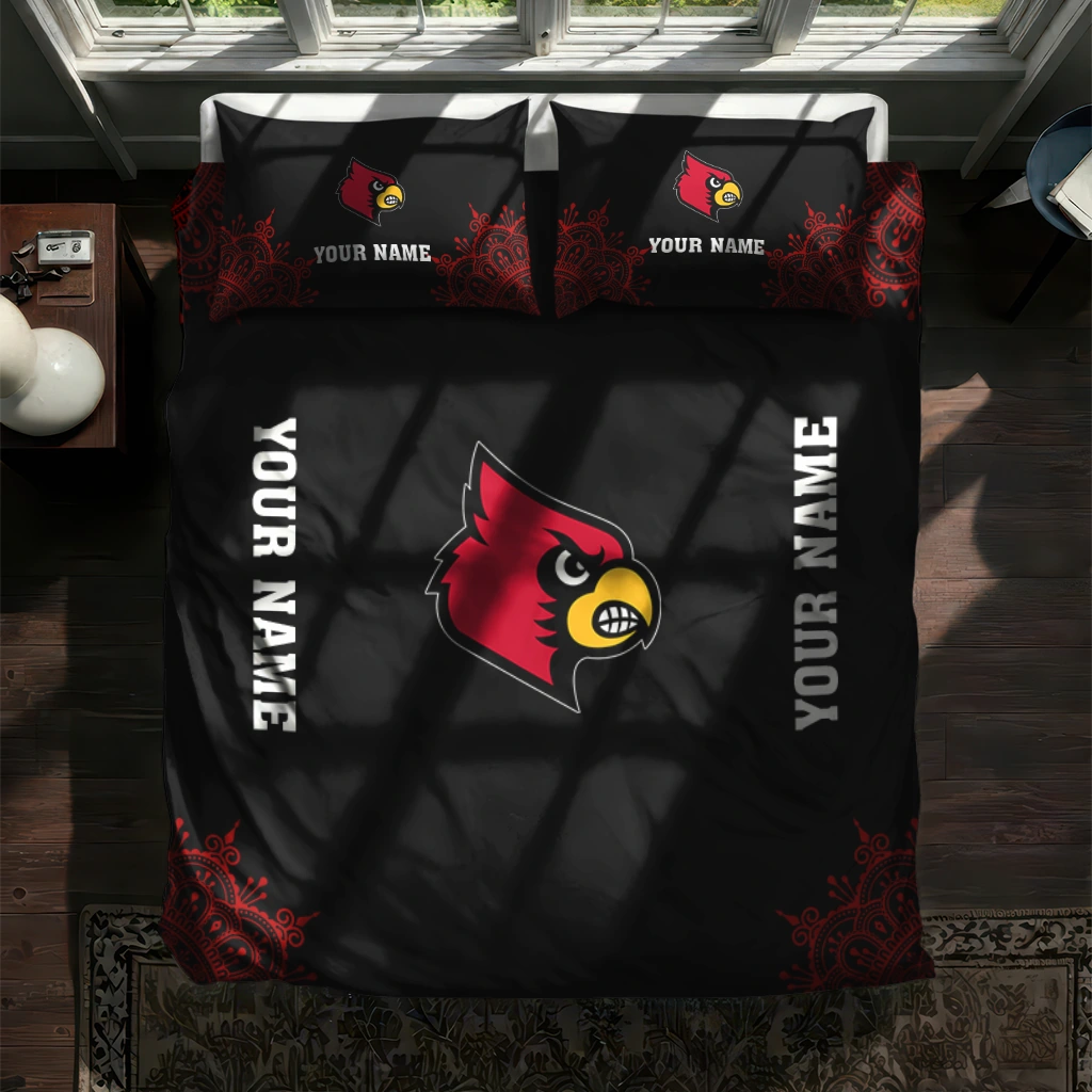 Louisville Cardinals Bedding Set – Custom Mandala Lacework Black Red
