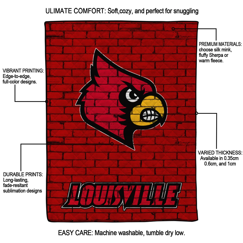 Wrap yourself in warmth and pride with the Louisville Cardinals Brick Grid Red Quilt Blanket from the Louisville Cardinals Blankets collection at Yes That Blanket. Made from 100% premium quilting-weight polyester blended with a touch of microfiber, this quilt offers a smooth, soft finish you’ll love. Choose between two quilting styles—Stipple or Diagonal—and enjoy the comfort of a cotton-filled layer inside that adds extra coziness for every season. The border is available in classic black or white, giving your design a clean, timeless edge.