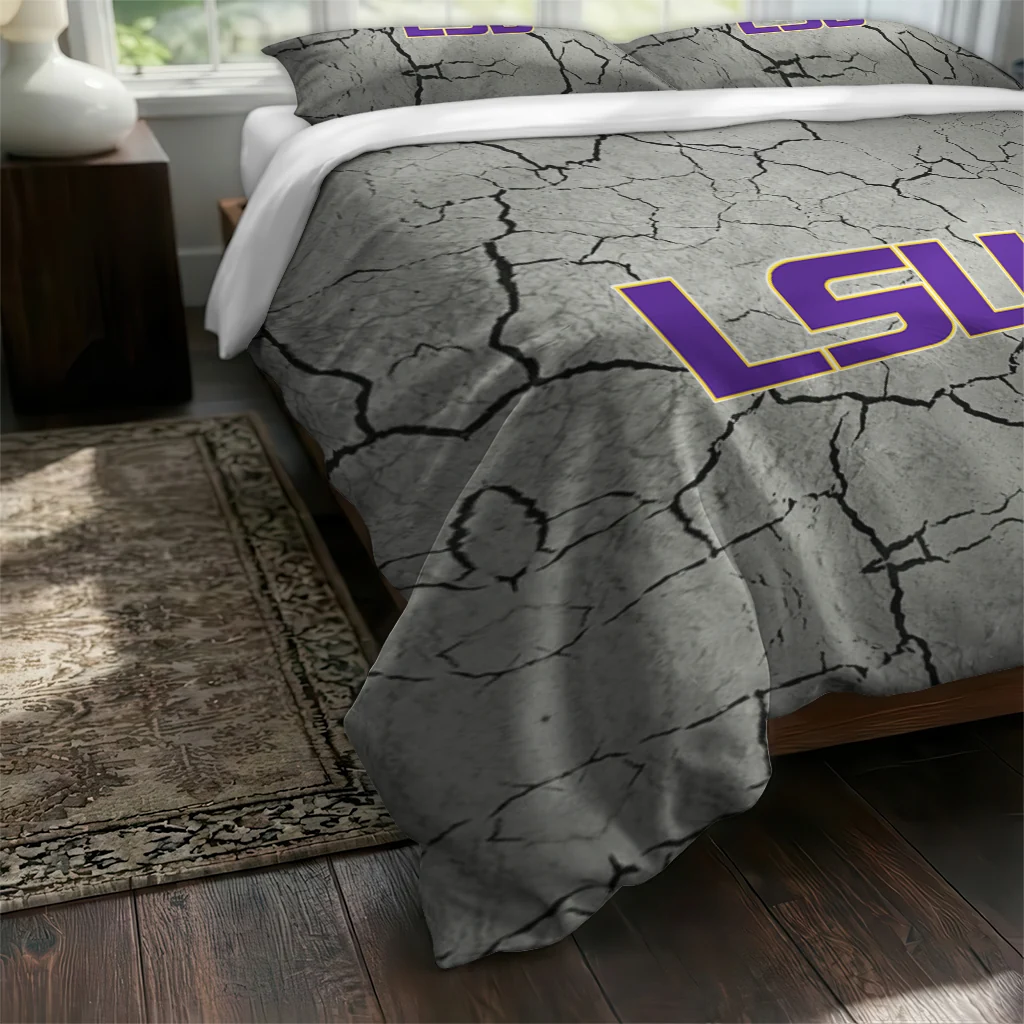 The LSU Tigers Bedding Set – Cracked Texture Gray Purple makes your room feel complete, warm, and overflowing with team pride. Designed for true fans, this bedding set from the LSU Tigers Bedding Sets collection at Yes That Blanket turns your sanctuary into a cozy retreat where sport style meets ultimate relaxation. Experience the perfect blend of comfort and passion every night with a finish so soft, you’ll never want to leave.