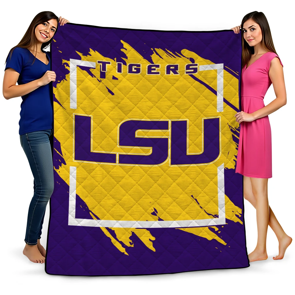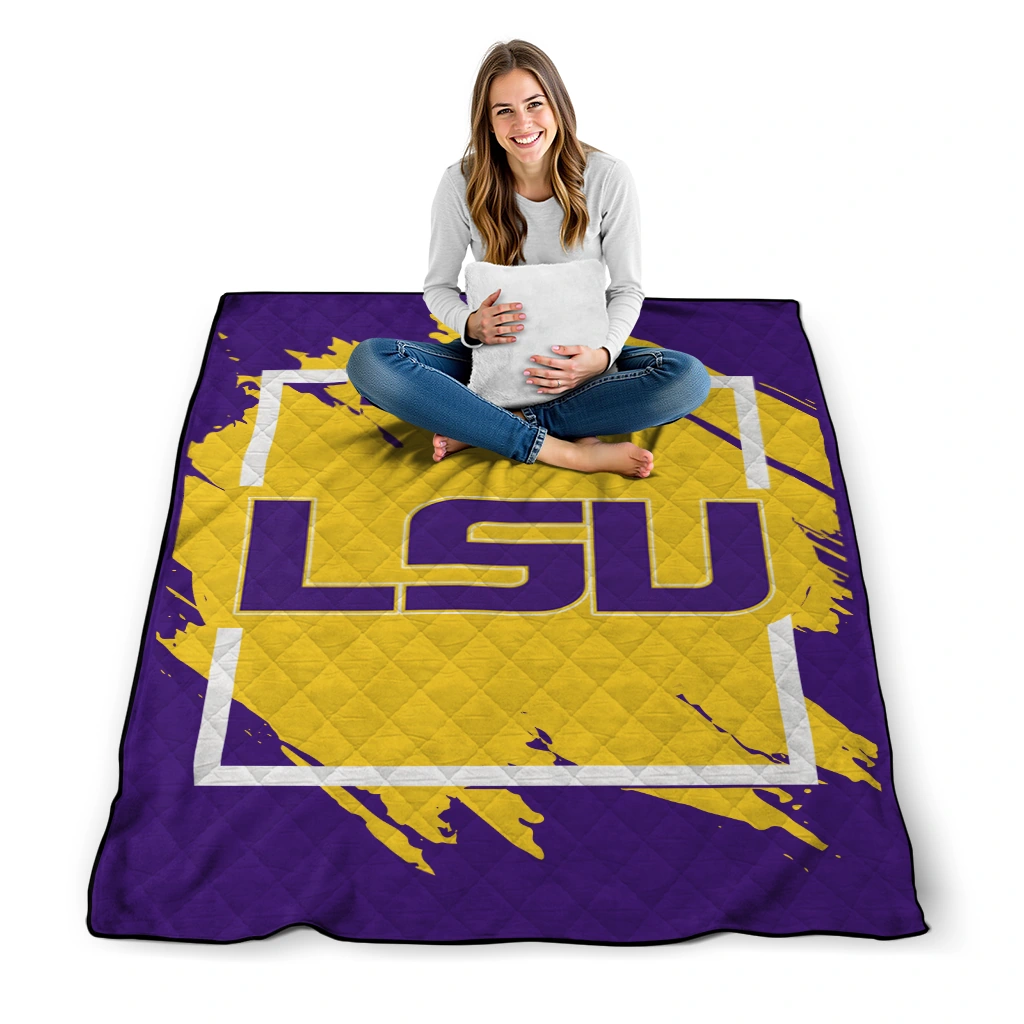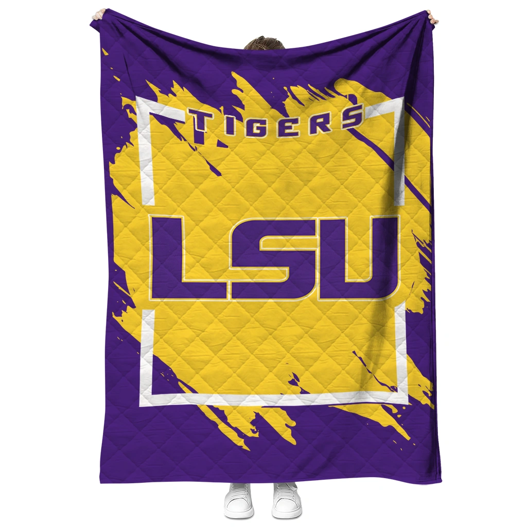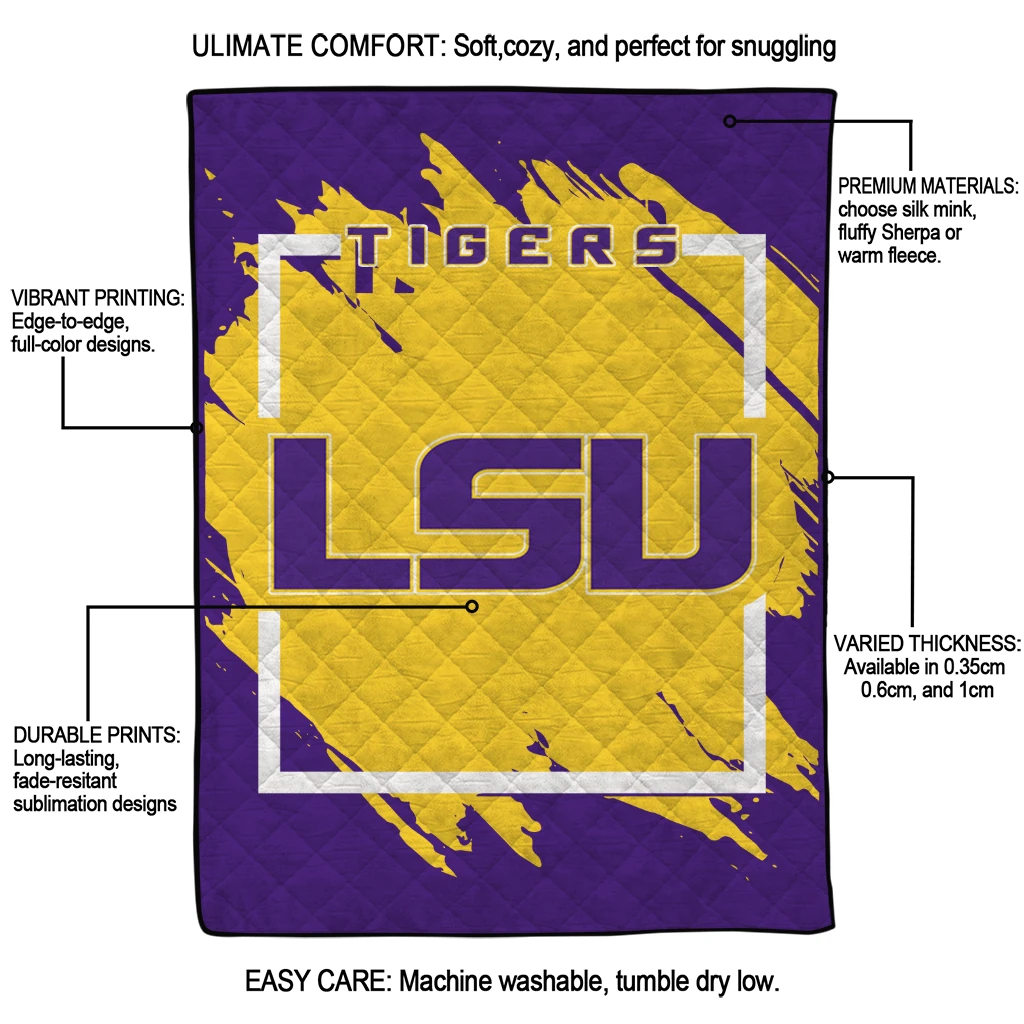 Wrap yourself in warmth and pride with the LSU Tigers Block Border Purple Quilt Blanket from the LSU Tigers Blankets collection at Yes That Blanket. Made from 100% premium quilting-weight polyester blended with a touch of microfiber, this quilt offers a smooth, soft finish you’ll love. Choose between two quilting styles—Stipple or Diagonal—and enjoy the comfort of a cotton-filled layer inside that adds extra coziness for every season. The border is available in classic black or white, giving your design a clean, timeless edge.