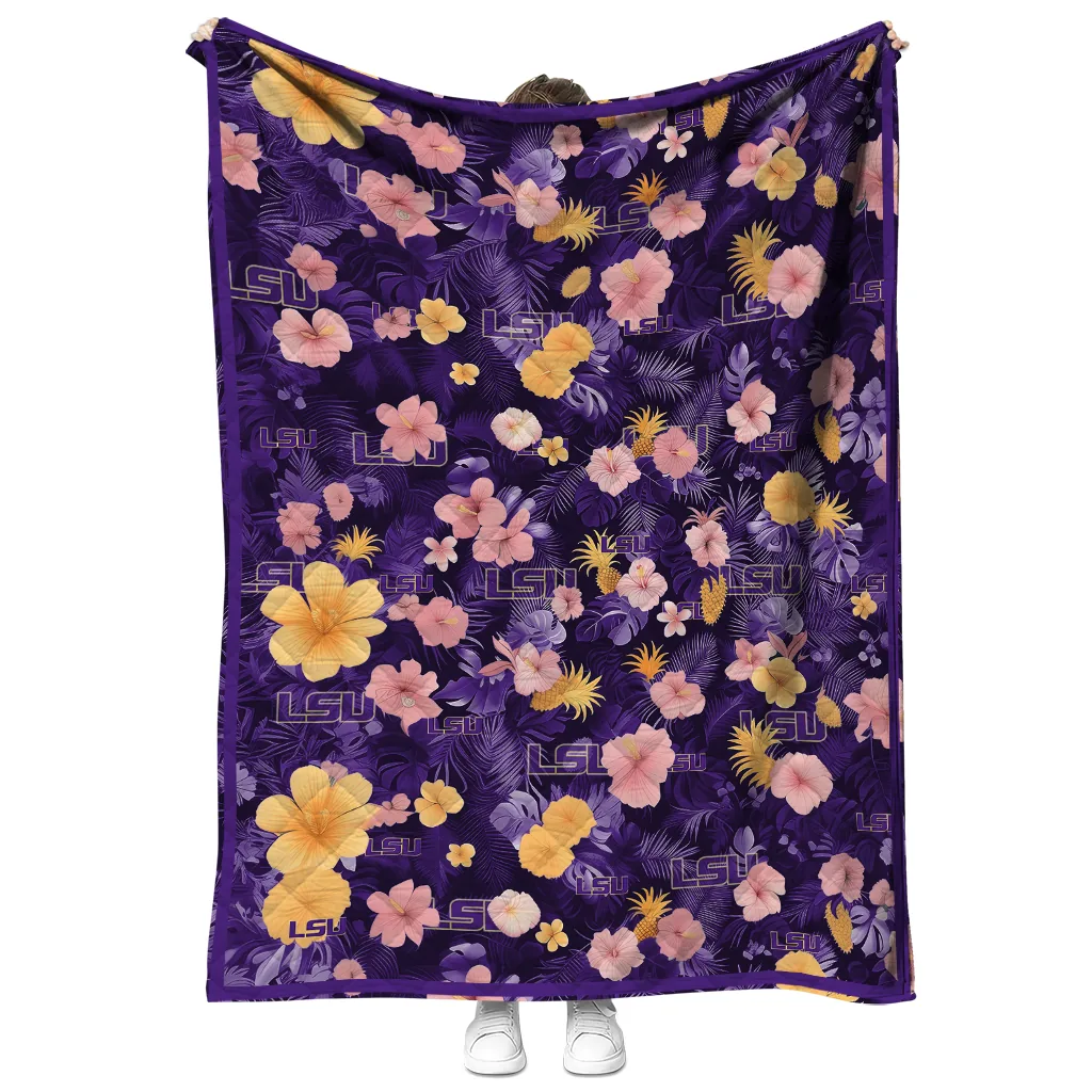 LSU Tigers Hibiscus Foliage Purple Quilt Blanket