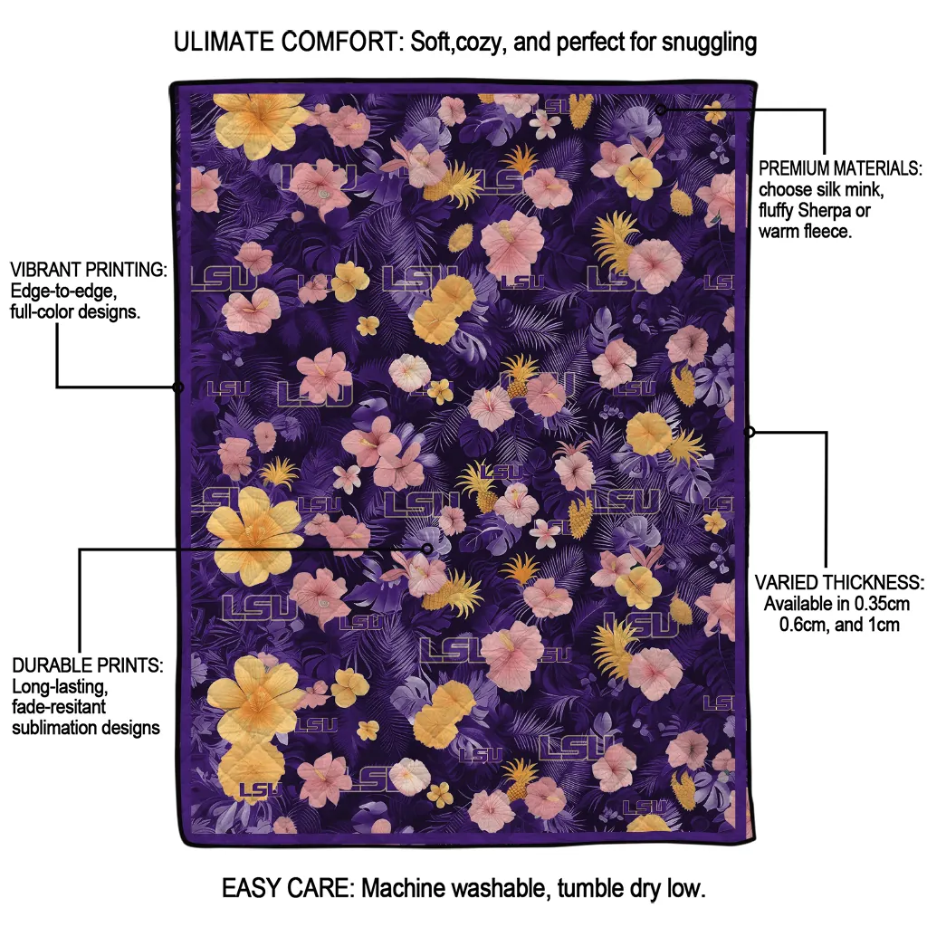 Be the first to review “LSU Tigers Hibiscus Foliage Purple Quilt Blanket”