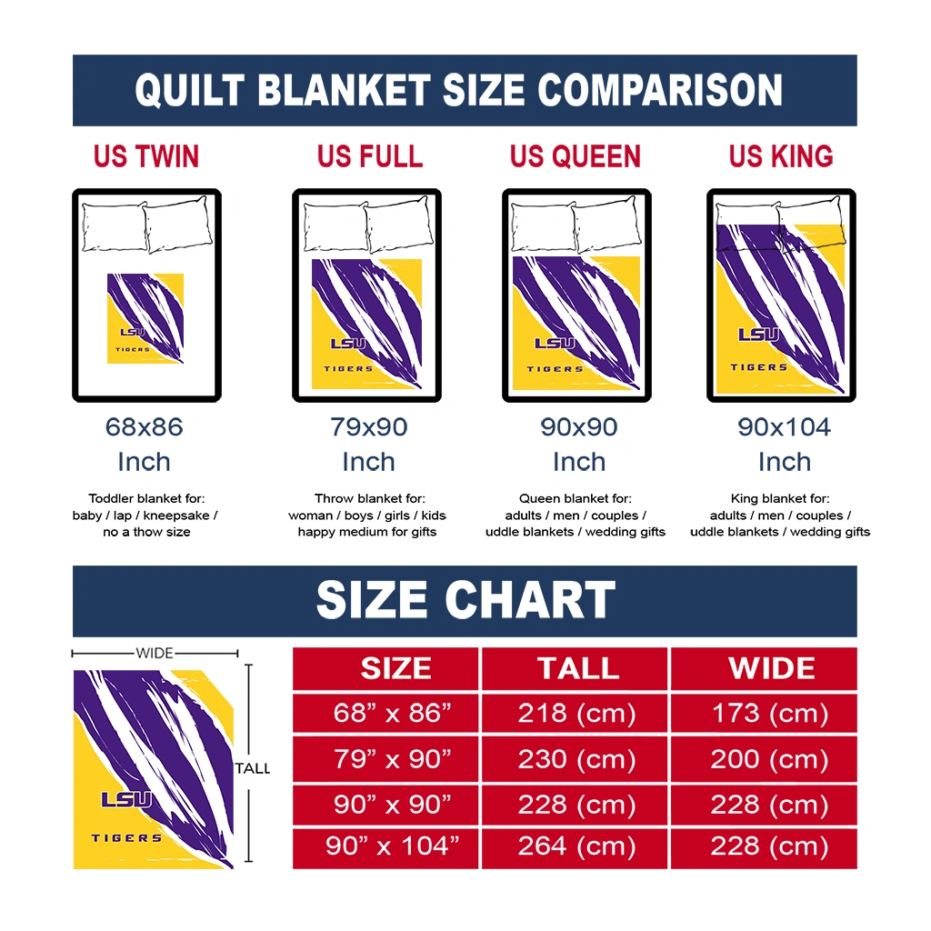 Wrap yourself in warmth and pride with the LSU Tigers Stroke Art Purple White Quilt Blanket from the LSU Tigers Blankets collection at Yes That Blanket. Made from 100% premium quilting-weight polyester blended with a touch of microfiber, this quilt offers a smooth, soft finish you’ll love. Choose between two quilting styles—Stipple or Diagonal—and enjoy the comfort of a cotton-filled layer inside that adds extra coziness for every season. The border is available in classic black or white, giving your design a clean, timeless edge.
