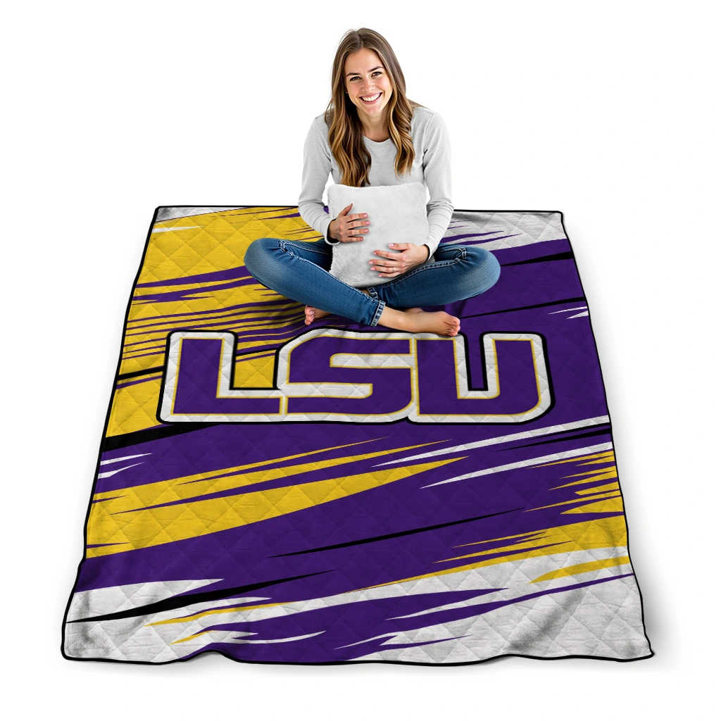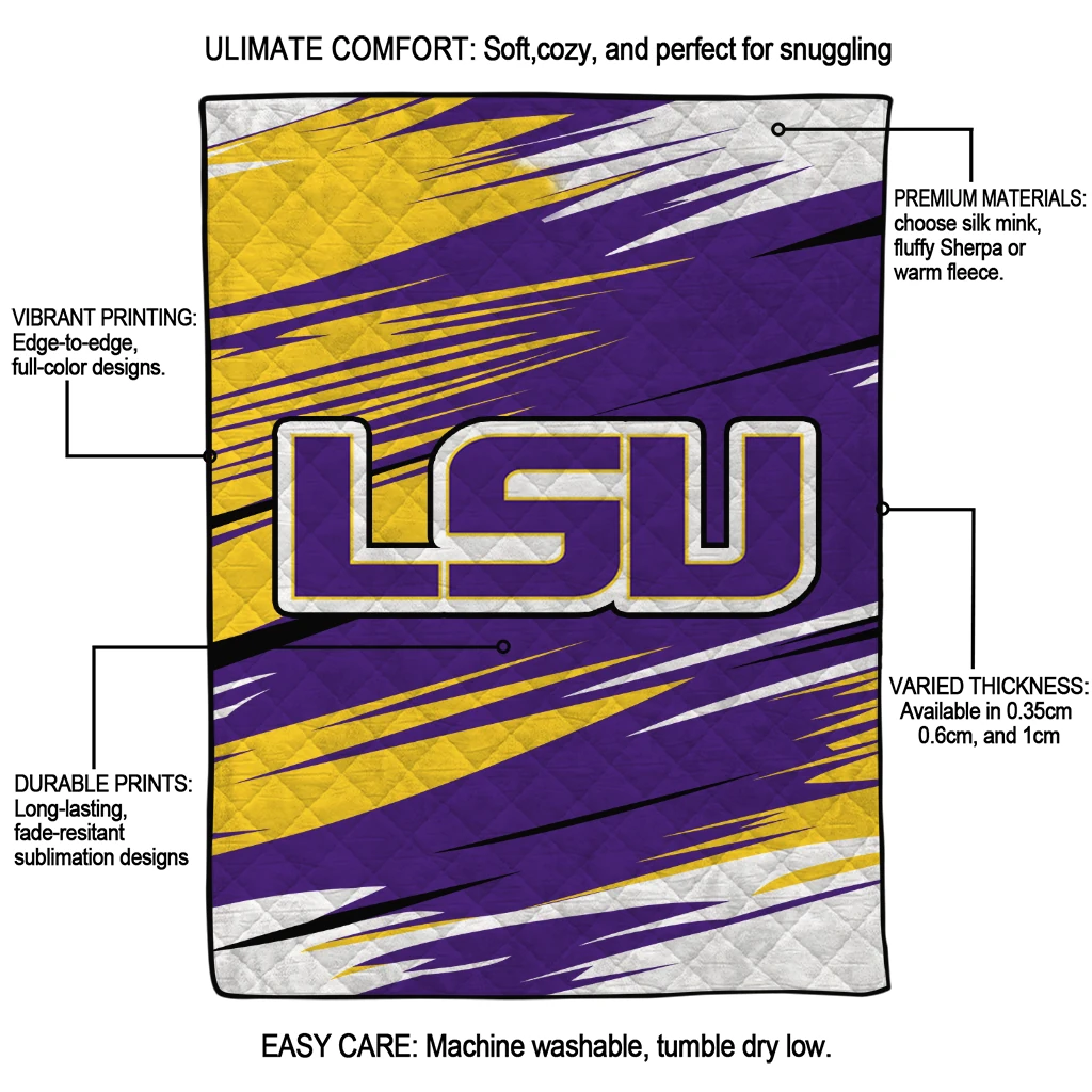 LSU Tigers Wild Lines Purple White Quilt Blanket