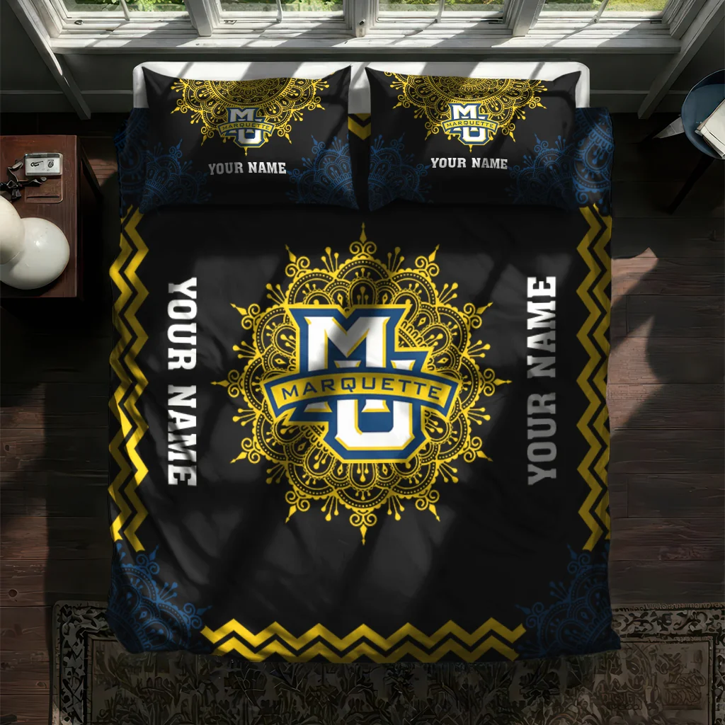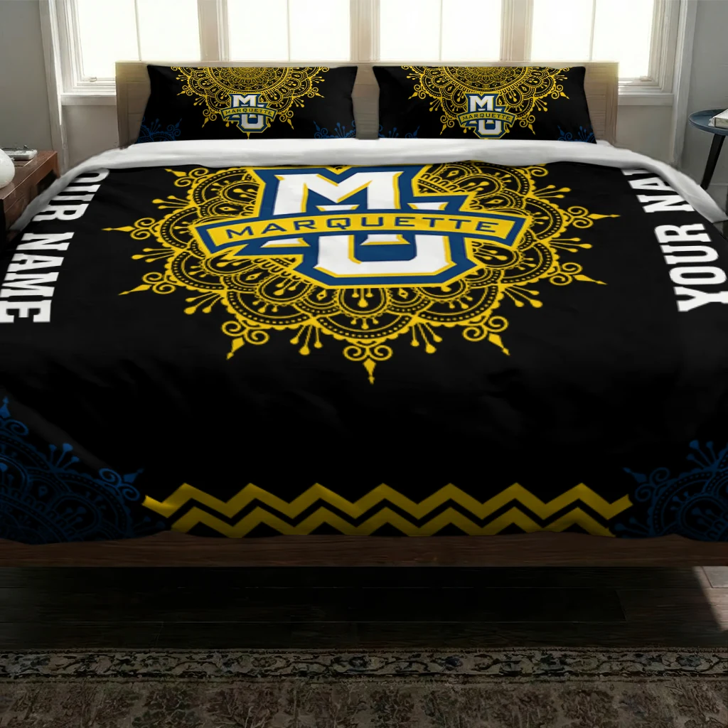 Marquette Golden Eagles Bedding Set – Customized Mandala Lacework Black Yellow