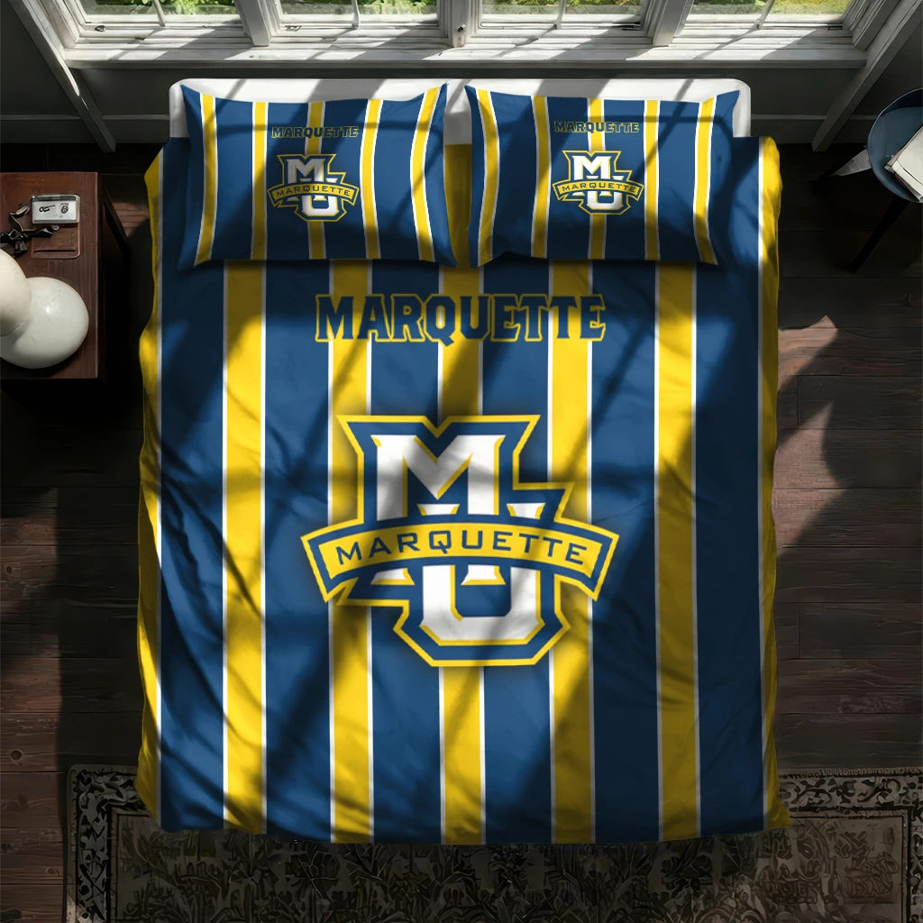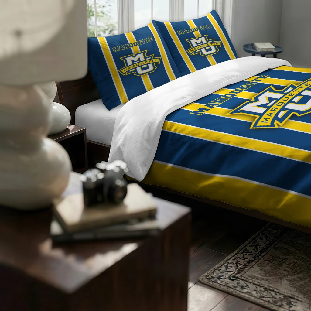 Marquette Golden Eagles Bedding Set – Stripe Style Blue Yellow