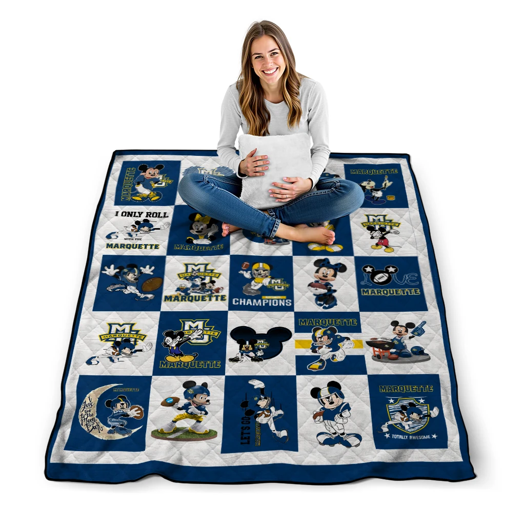 The Marquette Golden Eagles Mickey Mouse Motif Blue White Quilt Blanket is more than a blanket—it’s everyday comfort, thoughtfully made. Crafted from premium quilting fabric with a soft microfiber touch, it offers a smooth hand-feel and lasting coziness. Layered quilting with a cotton-filled core provides adaptable warmth across seasons while maintaining a clean, tailored look on your bed or sofa.