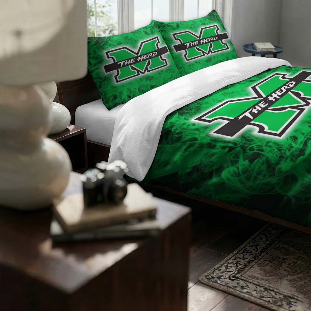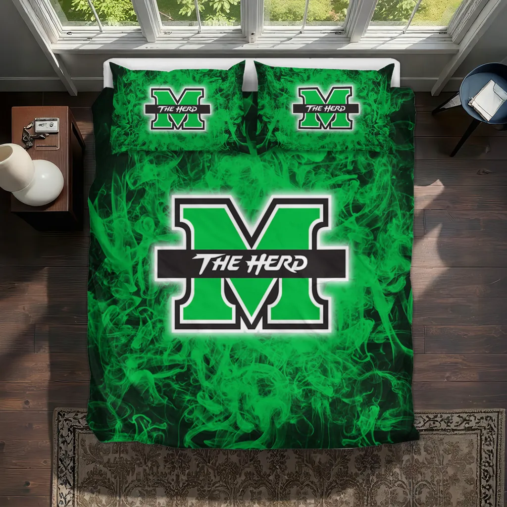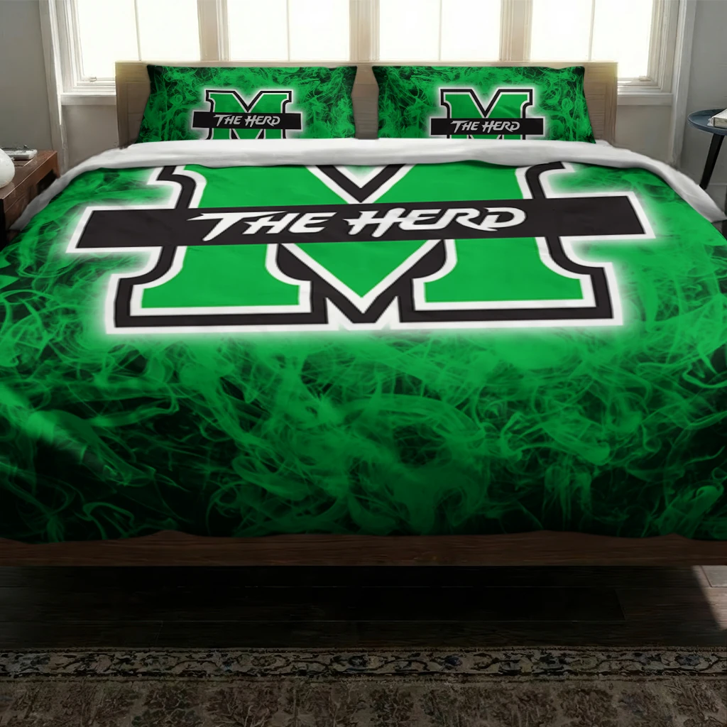 The Marshall Thundering Herd Bedding Set – Red Mist Green Black makes your room feel complete, warm, and overflowing with team pride. Designed for true fans, this bedding set from the Marshall Thundering Herd Bedding Sets collection at Yes That Blanket turns your sanctuary into a cozy retreat where sport style meets ultimate relaxation. Experience the perfect blend of comfort and passion every night with a finish so soft, you’ll never want to leave.