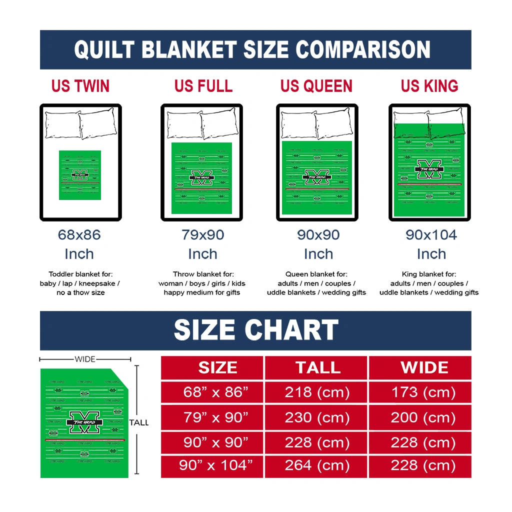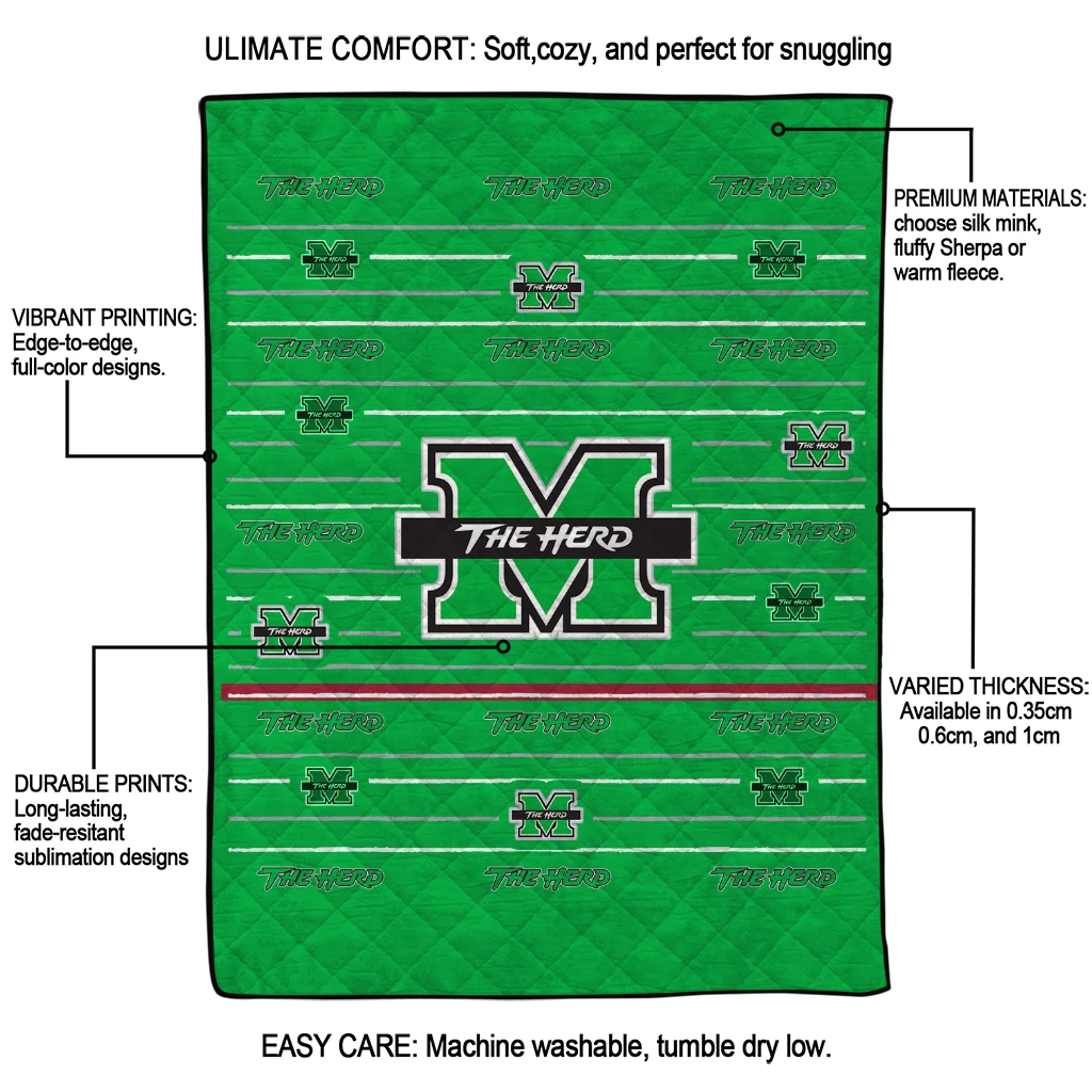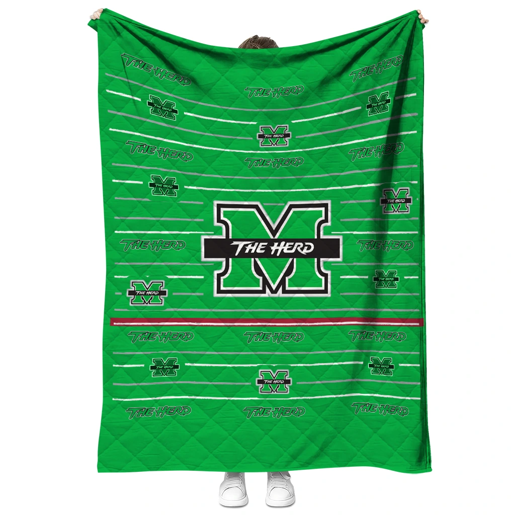 Wrap yourself in warmth and pride with the Marshall Thundering Herd Handdrawn Stripes Green Quilt Blanket from the Marshall Thundering Herd Blankets collection at Yes That Blanket. Made from 100% premium quilting-weight polyester blended with a touch of microfiber, this quilt offers a smooth, soft finish you’ll love. Choose between two quilting styles—Stipple or Diagonal—and enjoy the comfort of a cotton-filled layer inside that adds extra coziness for every season. The border is available in classic black or white, giving your design a clean, timeless edge.