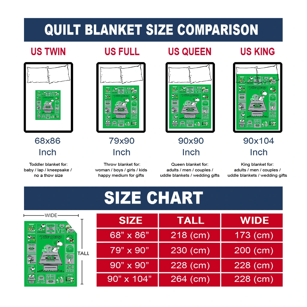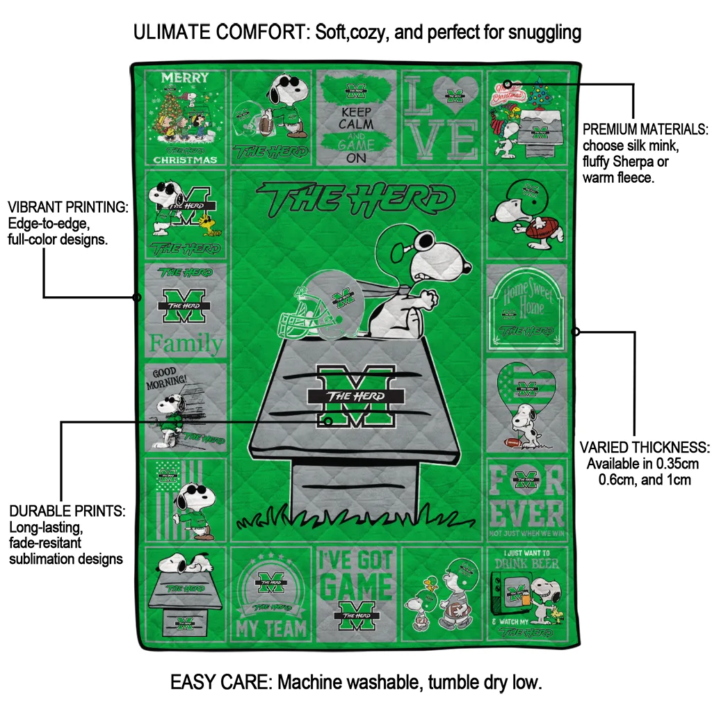 Wrap yourself in warmth and pride with the Marshall Thundering Herd Snoopy Love Green Quilt Blanket from the Marshall Thundering Herd Blankets collection at Yes That Blanket. Made from 100% premium quilting-weight polyester blended with a touch of microfiber, this quilt offers a smooth, soft finish you’ll love. Choose between two quilting styles—Stipple or Diagonal—and enjoy the comfort of a cotton-filled layer inside that adds extra coziness for every season. The border is available in classic black or white, giving your design a clean, timeless edge.