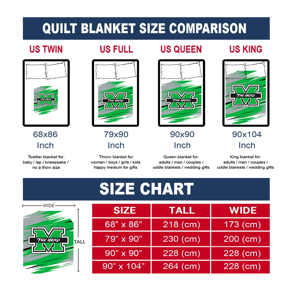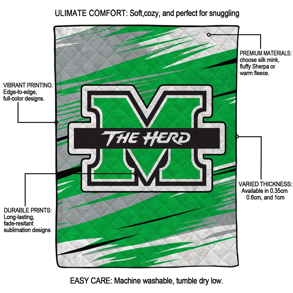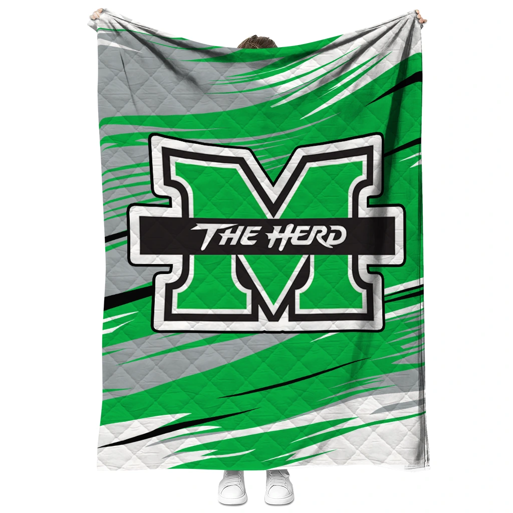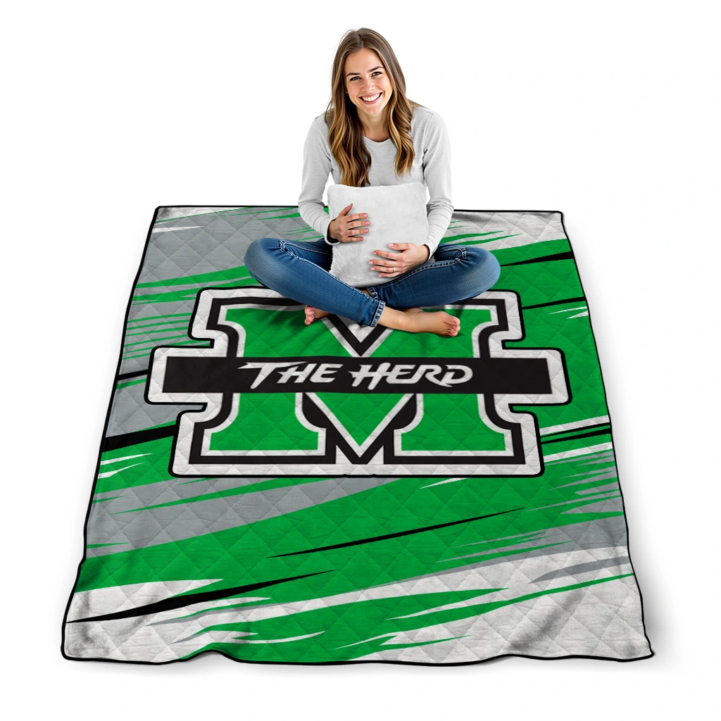 Wrap yourself in warmth and pride with the Marshall Thundering Herd Wild Lines Green White Quilt Blanket from the Marshall Thundering Herd Blankets collection at Yes That Blanket. Made from 100% premium quilting-weight polyester blended with a touch of microfiber, this quilt offers a smooth, soft finish you’ll love. Choose between two quilting styles—Stipple or Diagonal—and enjoy the comfort of a cotton-filled layer inside that adds extra coziness for every season. The border is available in classic black or white, giving your design a clean, timeless edge.