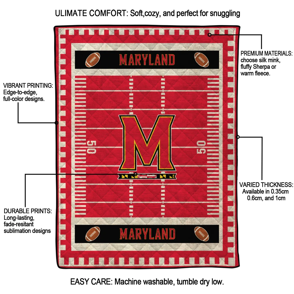 Wrap yourself in warmth and pride with the Maryland Terrapins Mickey Player Red Quilt Blanket from the Maryland Terrapins Blankets collection at Yes That Blanket. Made from 100% premium quilting-weight polyester blended with a touch of microfiber, this quilt offers a smooth, soft finish you’ll love. Choose between two quilting styles—Stipple or Diagonal—and enjoy the comfort of a cotton-filled layer inside that adds extra coziness for every season. The border is available in classic black or white, giving your design a clean, timeless edge.