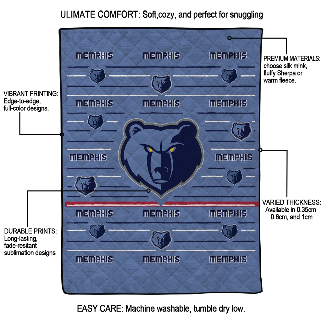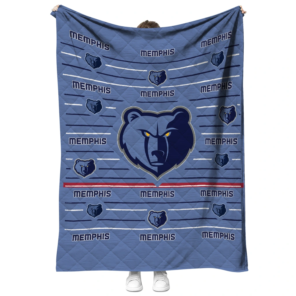 Memphis Grizzlies Handdrawn Stripes Blue Quilt Blanket
