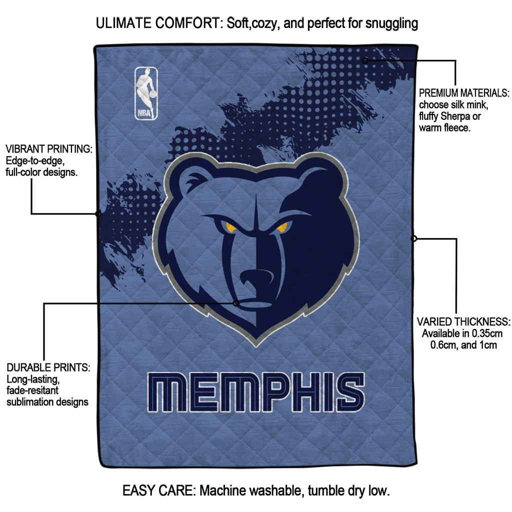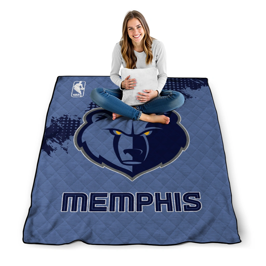 Memphis Grizzlies NBA Grunge Blue Quilt Blanket