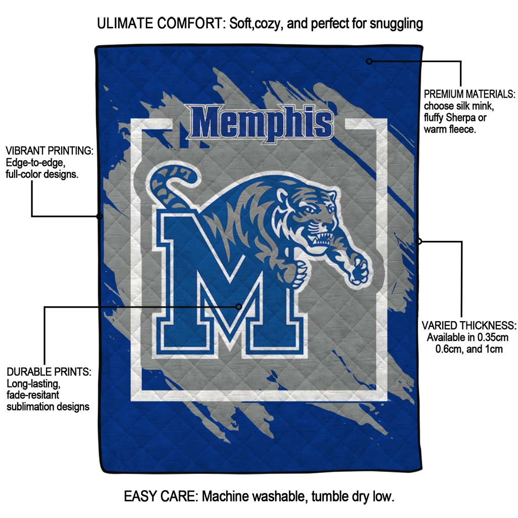 Wrap yourself in warmth and pride with the Memphis Tigers Block Border Blue Quilt Blanket from the Memphis Tigers Blankets collection at Yes That Blanket. Made from 100% premium quilting-weight polyester blended with a touch of microfiber, this quilt offers a smooth, soft finish you’ll love. Choose between two quilting styles—Stipple or Diagonal—and enjoy the comfort of a cotton-filled layer inside that adds extra coziness for every season. The border is available in classic black or white, giving your design a clean, timeless edge.