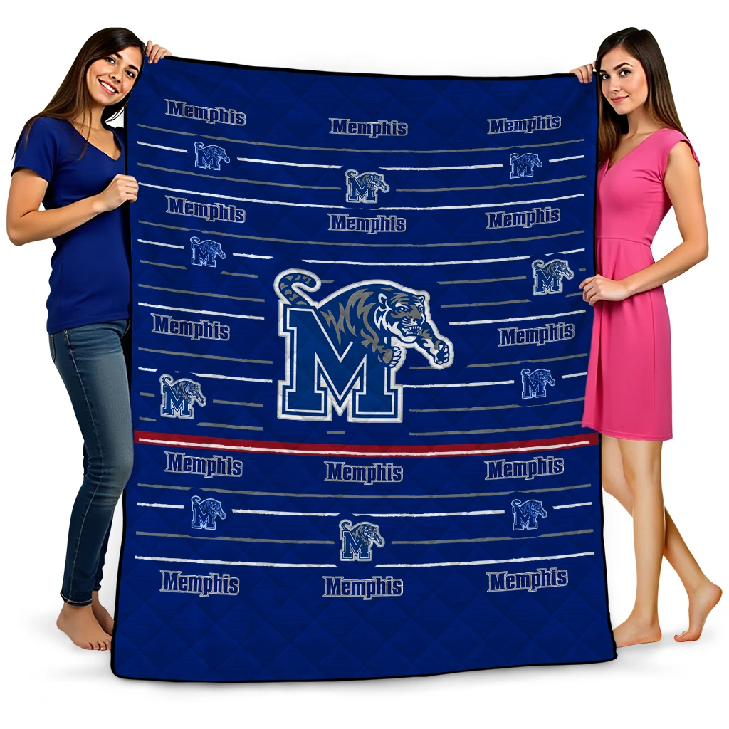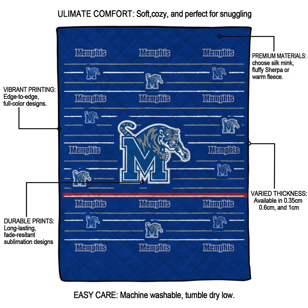 Wrap yourself in warmth and pride with the Memphis Tigers Handdrawn Stripes Blue Quilt Blanket from the Memphis Tigers Blankets collection at Yes That Blanket. Made from 100% premium quilting-weight polyester blended with a touch of microfiber, this quilt offers a smooth, soft finish you’ll love. Choose between two quilting styles—Stipple or Diagonal—and enjoy the comfort of a cotton-filled layer inside that adds extra coziness for every season. The border is available in classic black or white, giving your design a clean, timeless edge.