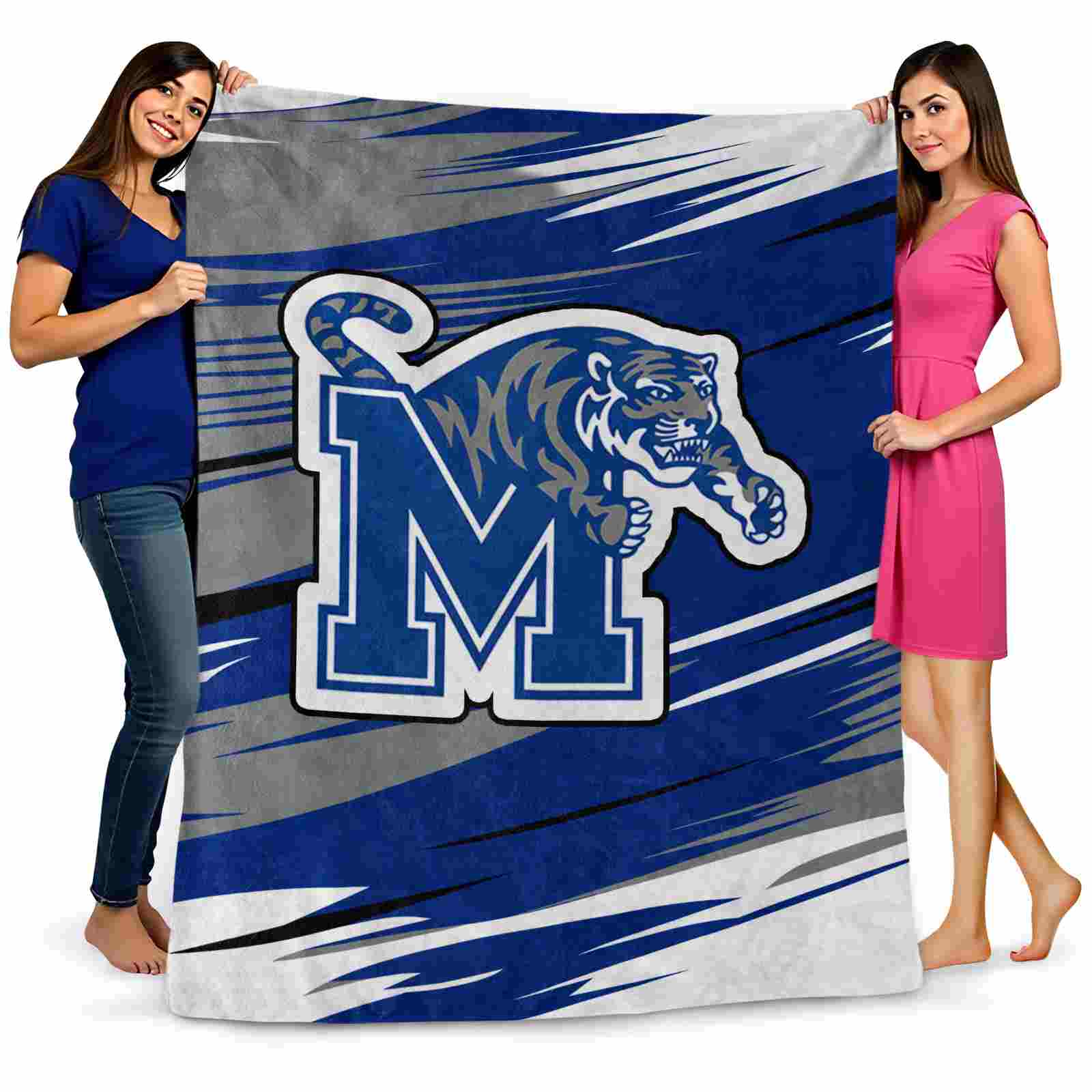 Memphis Tigers Paint Streaks Blue White Blanket