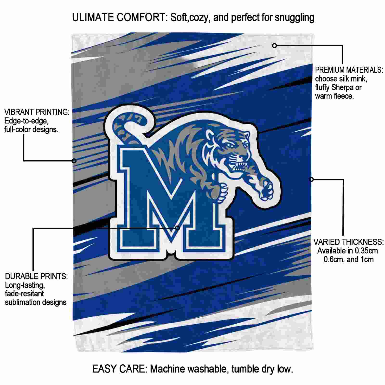 Be the first to review “Memphis Tigers Paint Streaks Blue White Blanket”