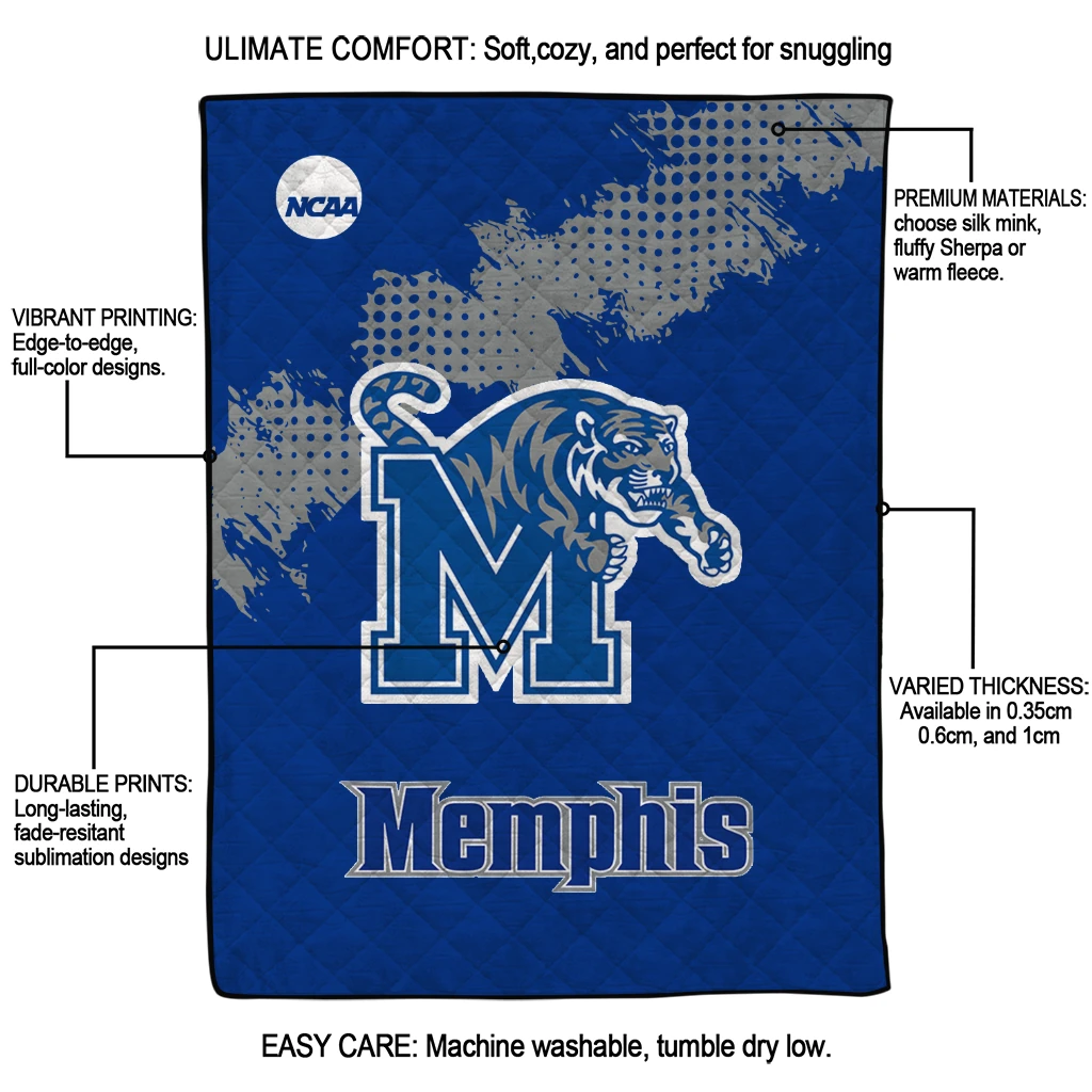 Wrap yourself in warmth and pride with the Memphis Tigers Paint Trail Blue Quilt Blanket from the Memphis Tigers Blankets collection at Yes That Blanket. Made from 100% premium quilting-weight polyester blended with a touch of microfiber, this quilt offers a smooth, soft finish you’ll love. Choose between two quilting styles—Stipple or Diagonal—and enjoy the comfort of a cotton-filled layer inside that adds extra coziness for every season. The border is available in classic black or white, giving your design a clean, timeless edge.