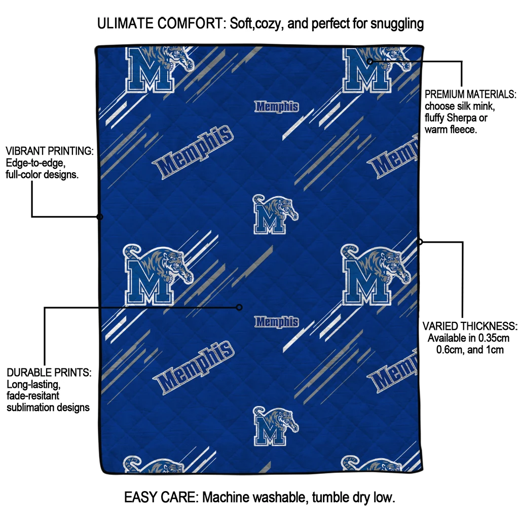 Wrap yourself in warmth and pride with the Memphis Tigers Sketch Lines Blue Quilt Blanket from the Memphis Tigers Blankets collection at Yes That Blanket. Made from 100% premium quilting-weight polyester blended with a touch of microfiber, this quilt offers a smooth, soft finish you’ll love. Choose between two quilting styles—Stipple or Diagonal—and enjoy the comfort of a cotton-filled layer inside that adds extra coziness for every season. The border is available in classic black or white, giving your design a clean, timeless edge.