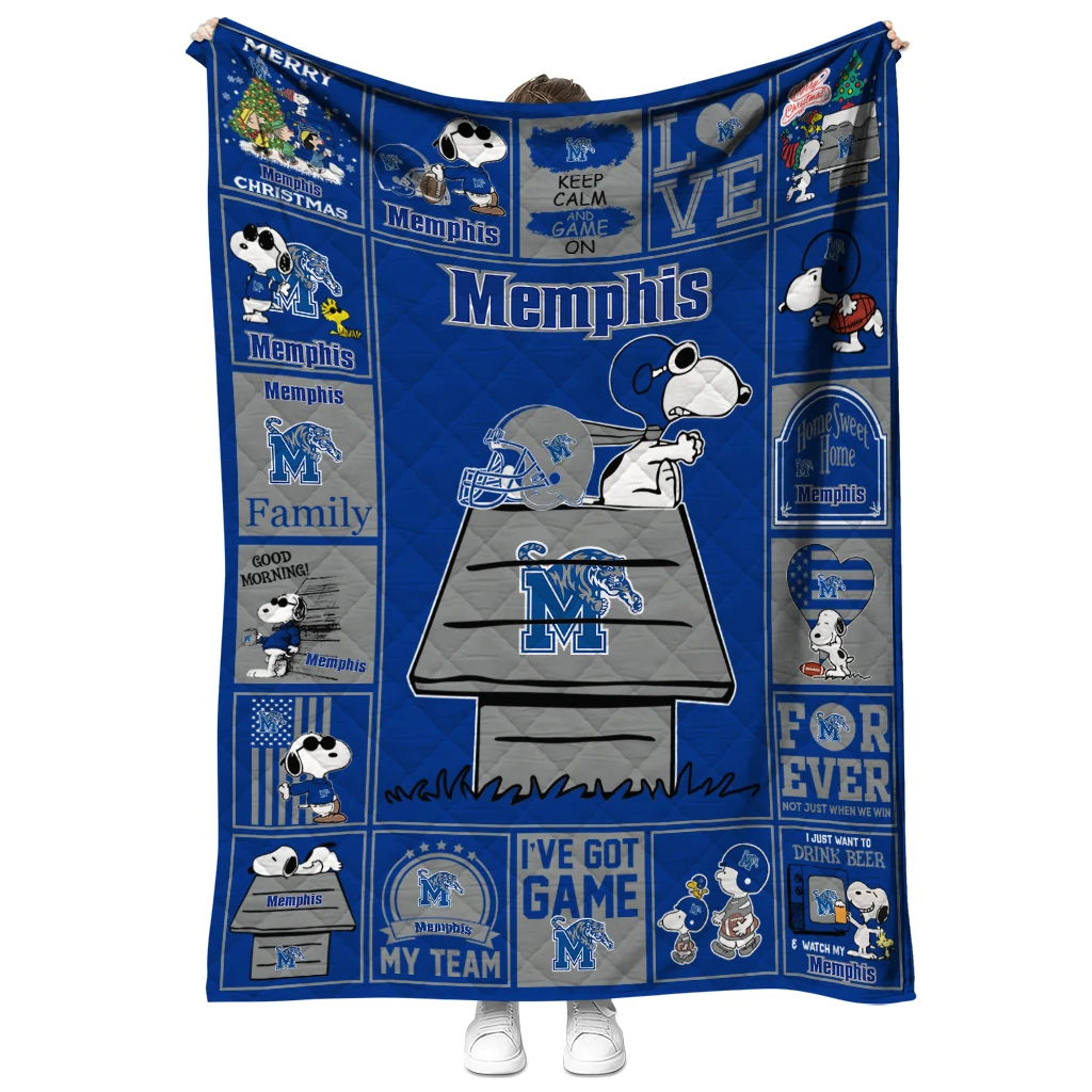 Memphis Tigers Snoopy Love Blue Quilt Blanket