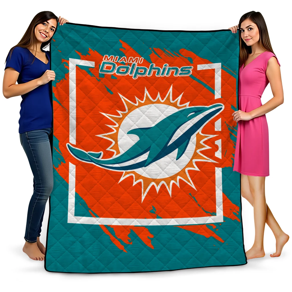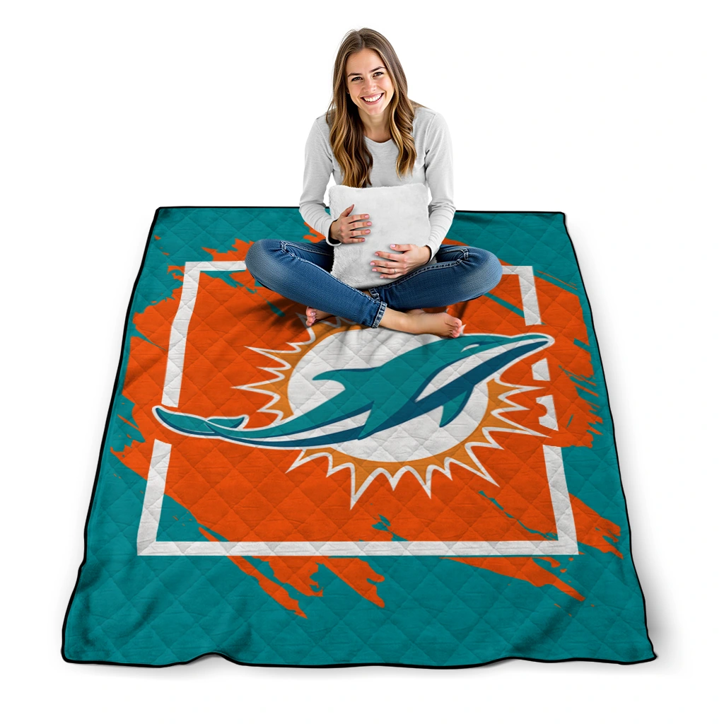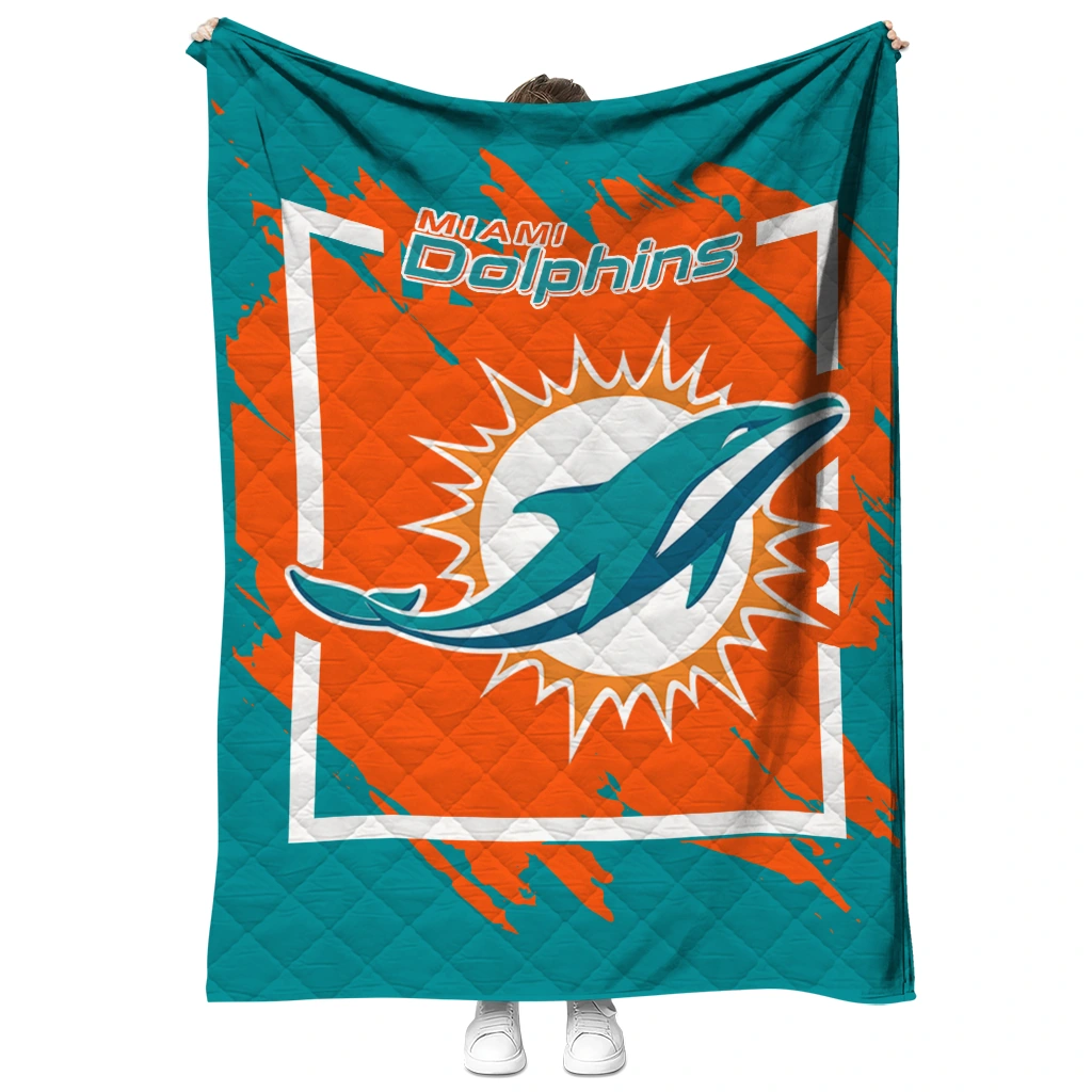 Miami Dolphins Block Border Aqua Quilt Blanket