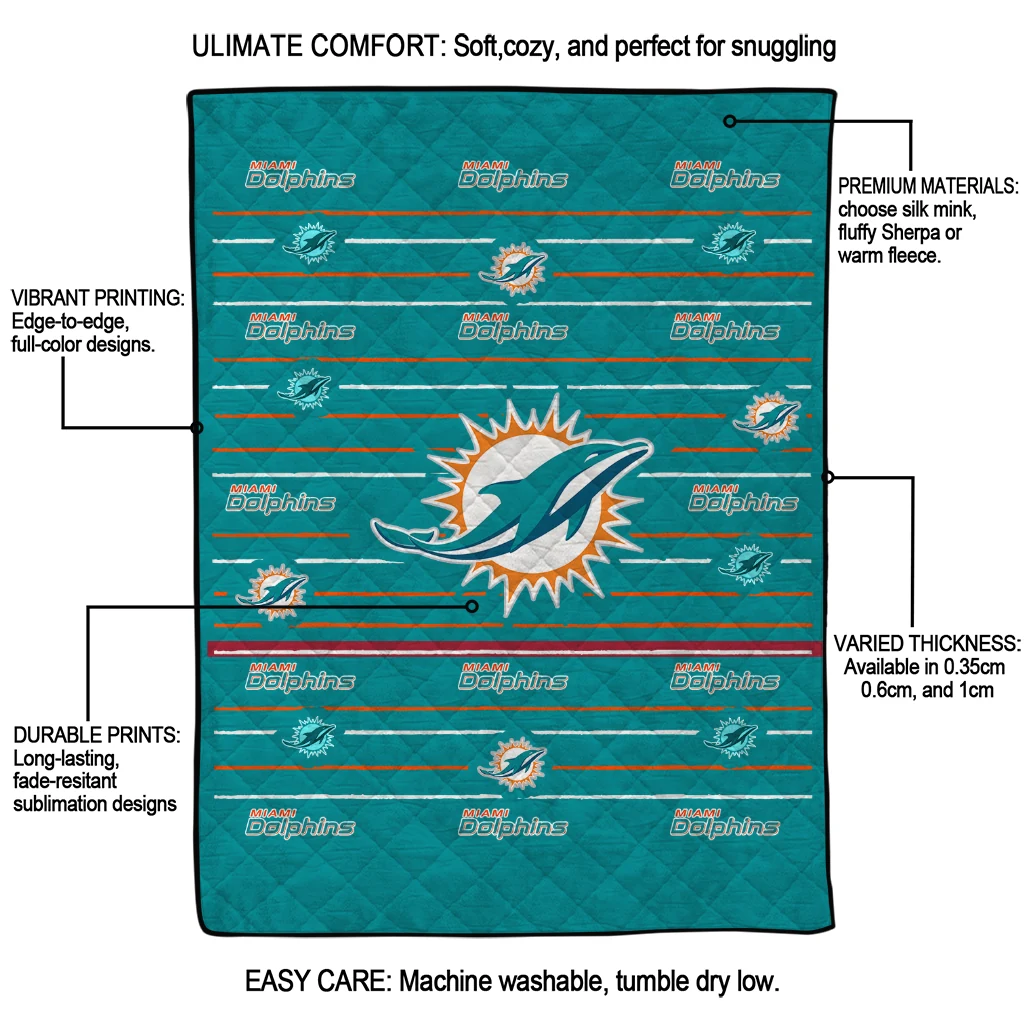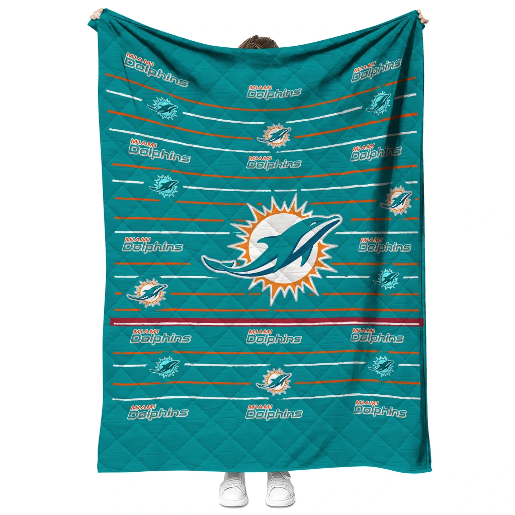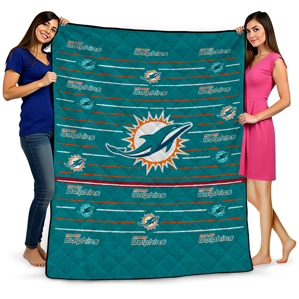 Miami Dolphins Handdrawn Stripes Aqua Quilt Blanket