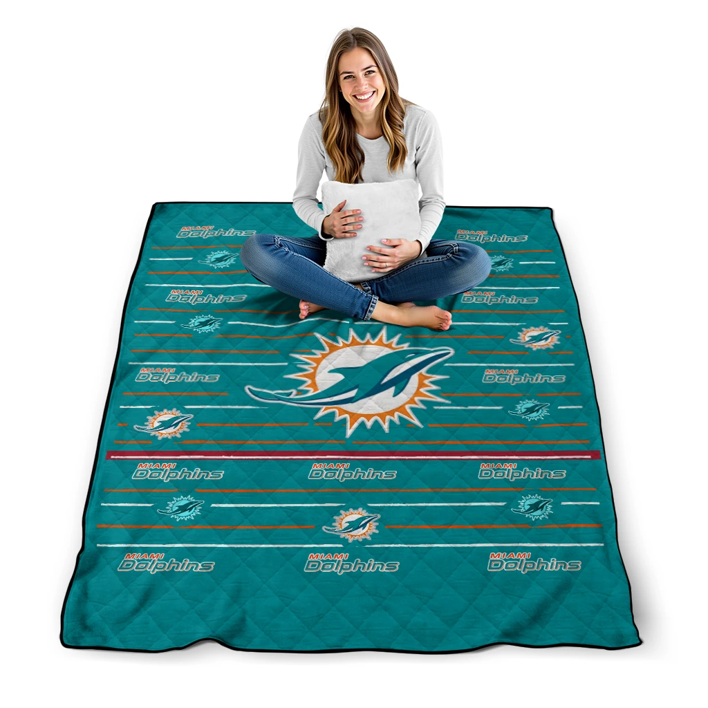The Miami Dolphins Handdrawn Stripes Aqua Quilt Blanket is more than a blanket—it’s everyday comfort, thoughtfully made. Crafted from premium quilting fabric with a soft microfiber touch, it offers a smooth hand-feel and lasting coziness. Layered quilting with a cotton-filled core provides adaptable warmth across seasons while maintaining a clean, tailored look on your bed or sofa.