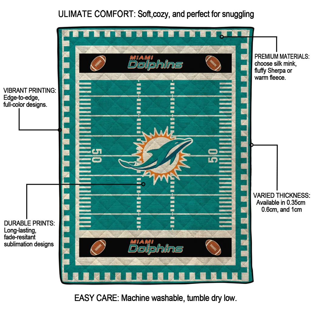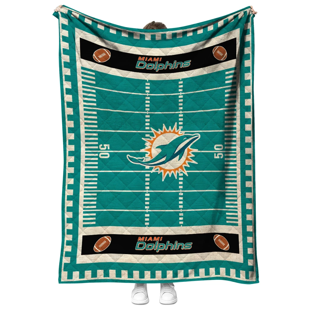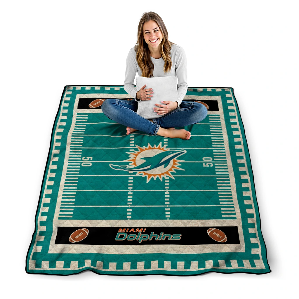 The Miami Dolphins Mickey Player Aqua Quilt Blanket is more than a blanket—it’s everyday comfort, thoughtfully made. Crafted from premium quilting fabric with a soft microfiber touch, it offers a smooth hand-feel and lasting coziness. Layered quilting with a cotton-filled core provides adaptable warmth across seasons while maintaining a clean, tailored look on your bed or sofa.