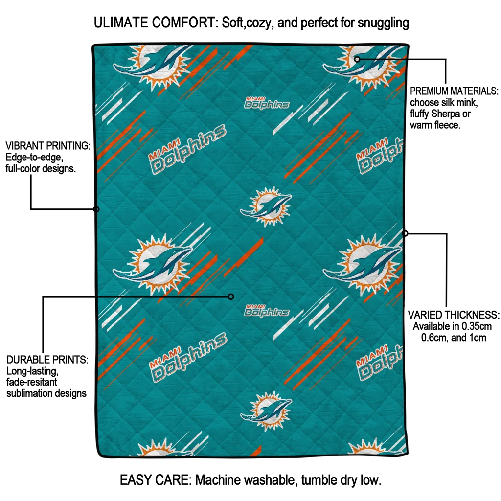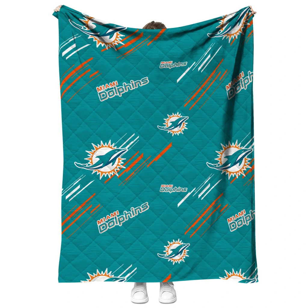 Miami Dolphins Sketch Lines Aqua Quilt Blanket