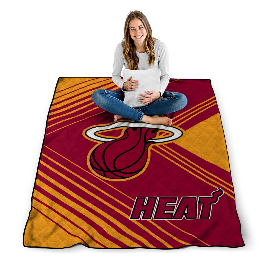 Wrap yourself in warmth and pride with the Miami Heat Arrow Layers Red Quilt Blanket from the Miami Heat Blankets collection at Yes That Blanket. Made from 100% premium quilting-weight polyester blended with a touch of microfiber, this quilt offers a smooth, soft finish you’ll love. Choose between two quilting styles—Stipple or Diagonal—and enjoy the comfort of a cotton-filled layer inside that adds extra coziness for every season. The border is available in classic black or white, giving your design a clean, timeless edge.