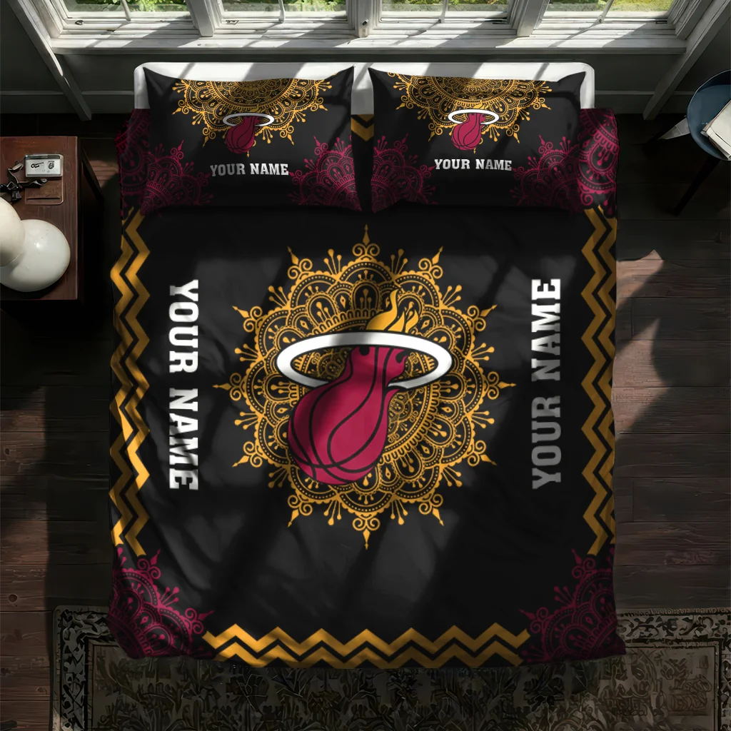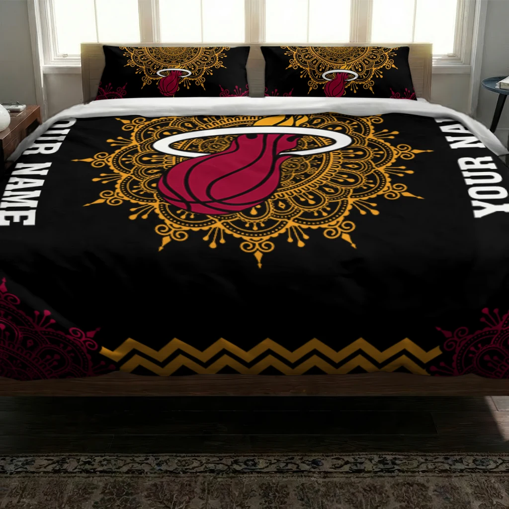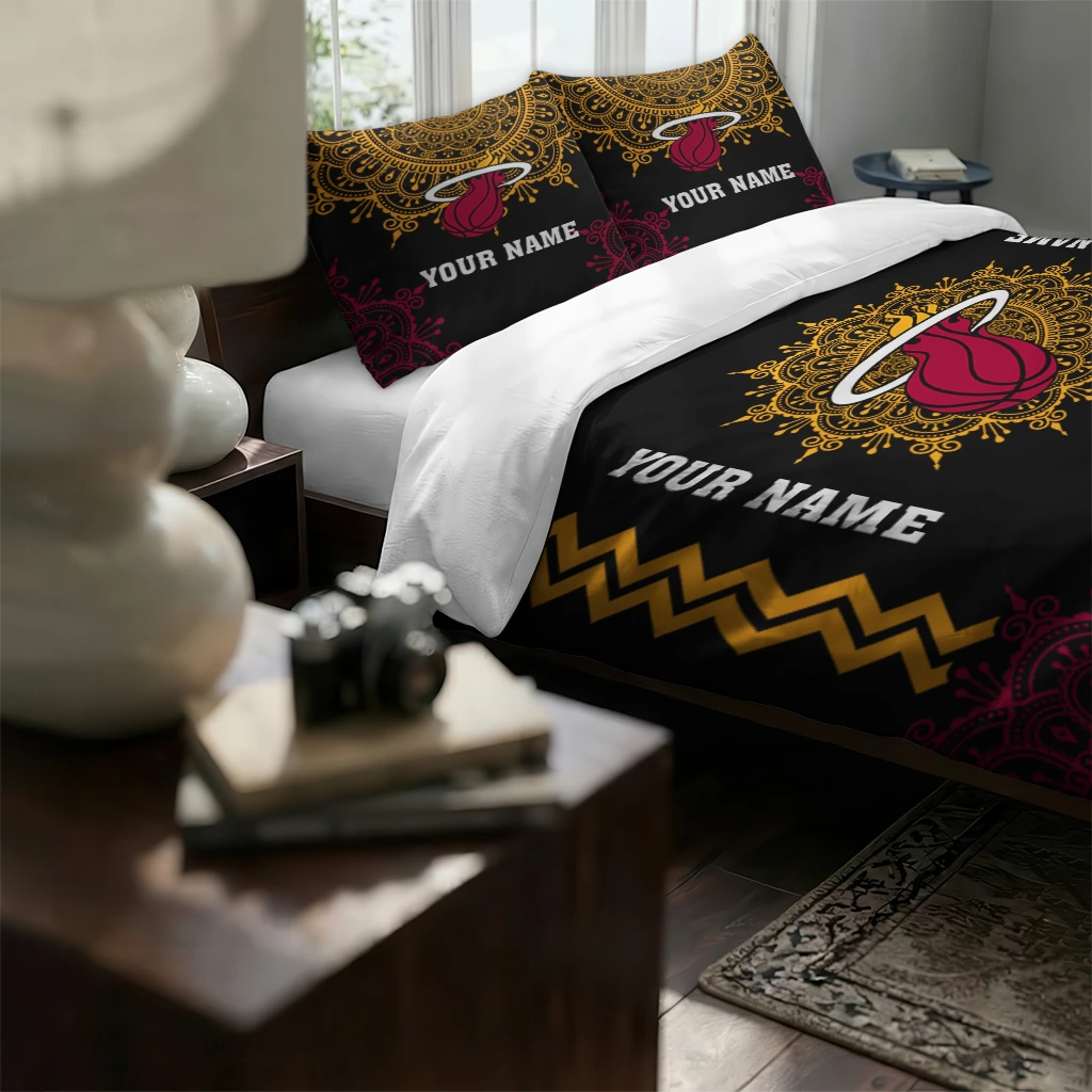 Miami Heat Bedding Set – Customized Mandala Lacework Black Yellow