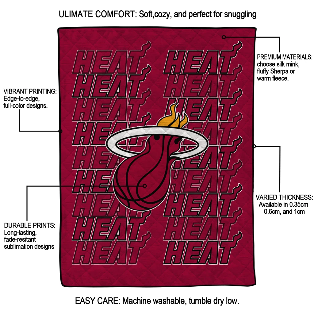 Wrap yourself in warmth and pride with the Miami Heat Bold Red Quilt Blanket from the Miami Heat Blankets collection at Yes That Blanket. Made from 100% premium quilting-weight polyester blended with a touch of microfiber, this quilt offers a smooth, soft finish you’ll love. Choose between two quilting styles—Stipple or Diagonal—and enjoy the comfort of a cotton-filled layer inside that adds extra coziness for every season. The border is available in classic black or white, giving your design a clean, timeless edge.