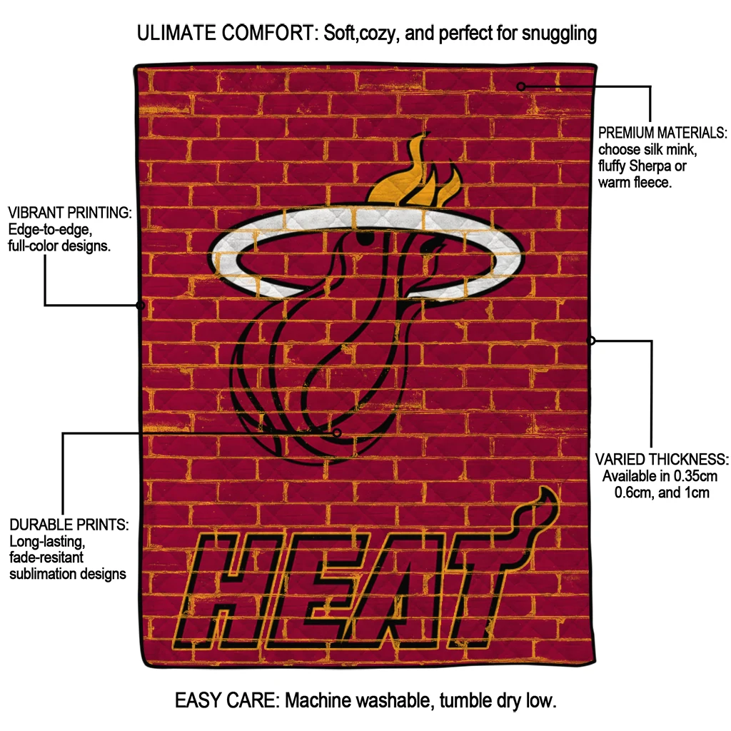 The Miami Heat Brick Grid Red Quilt Blanket is more than a blanket—it’s everyday comfort, thoughtfully made. Crafted from premium quilting fabric with a soft microfiber touch, it offers a smooth hand-feel and lasting coziness. Layered quilting with a cotton-filled core provides adaptable warmth across seasons while maintaining a clean, tailored look on your bed or sofa.