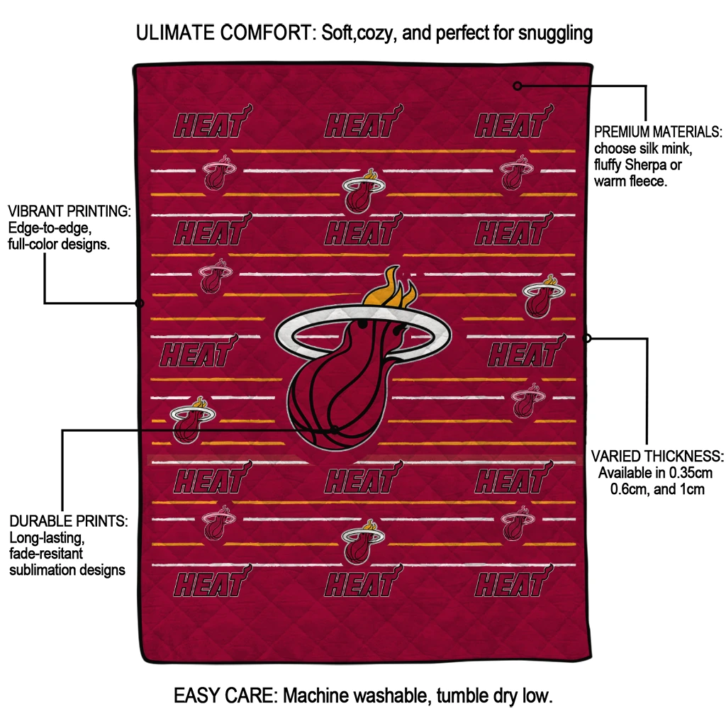 Wrap yourself in warmth and pride with the Miami Heat Handdrawn Stripes Red Quilt Blanket from the Miami Heat Blankets collection at Yes That Blanket. Made from 100% premium quilting-weight polyester blended with a touch of microfiber, this quilt offers a smooth, soft finish you’ll love. Choose between two quilting styles—Stipple or Diagonal—and enjoy the comfort of a cotton-filled layer inside that adds extra coziness for every season. The border is available in classic black or white, giving your design a clean, timeless edge.