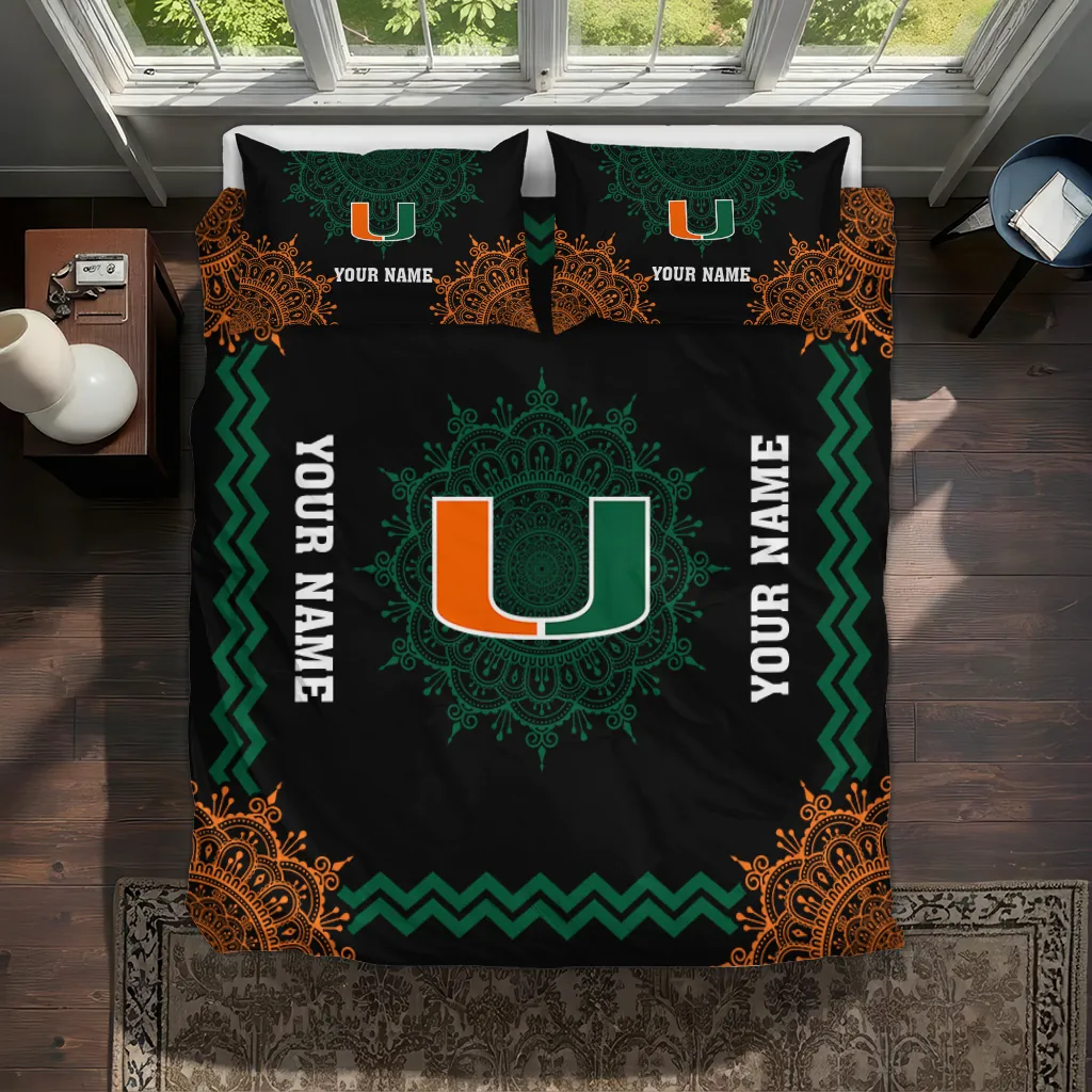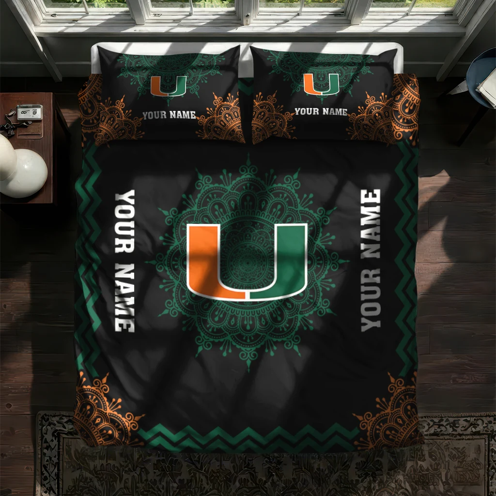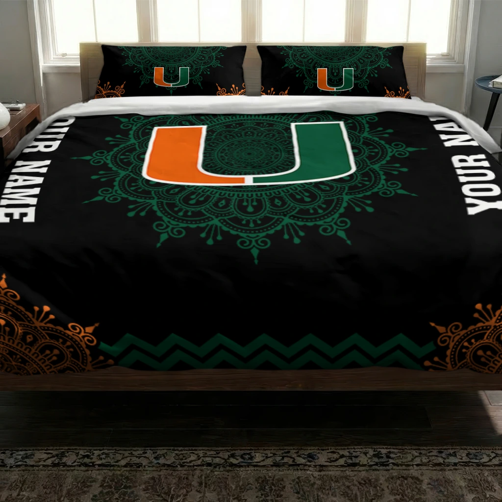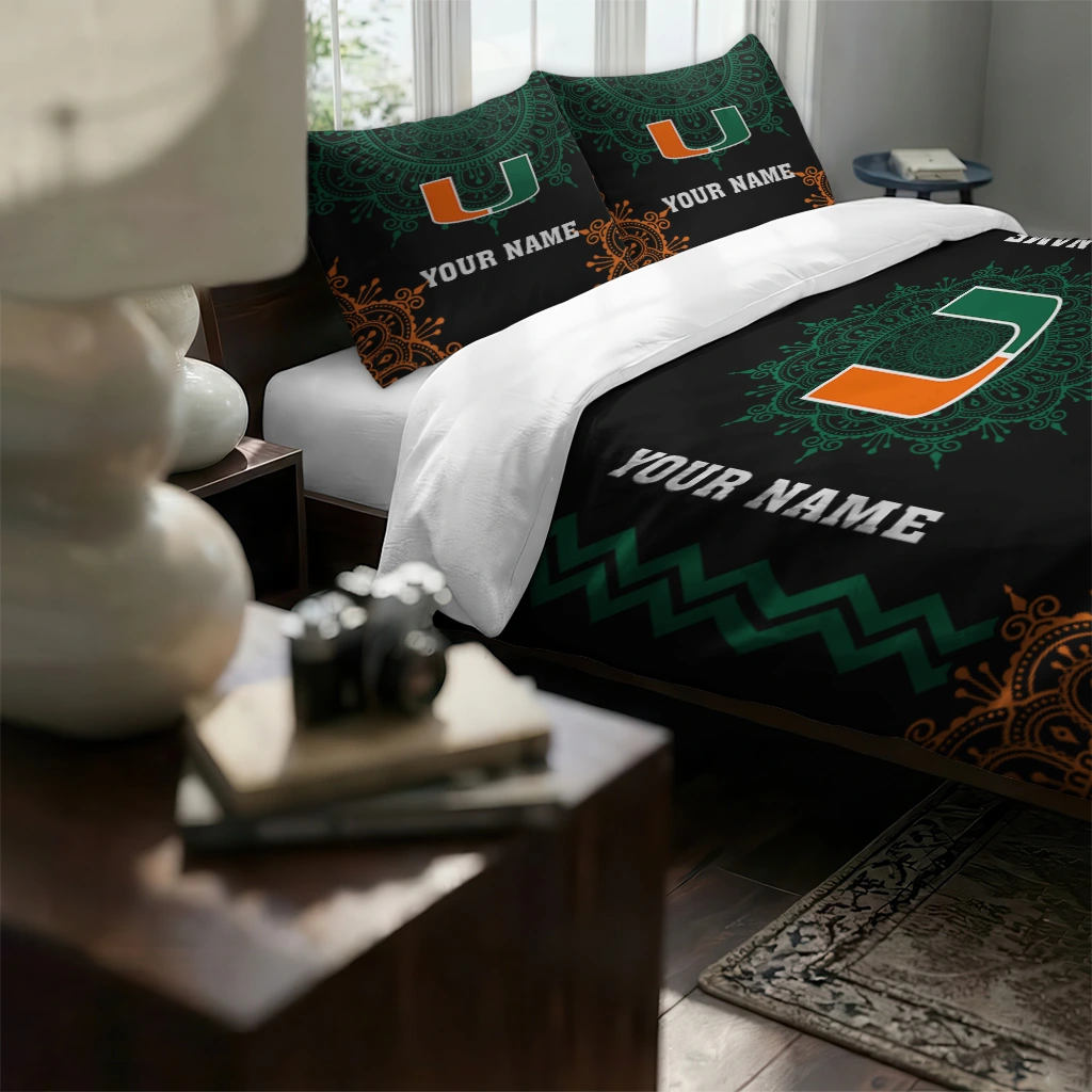 Miami Hurricanes Bedding Set – Custom Mandala Lacework Black Orange
