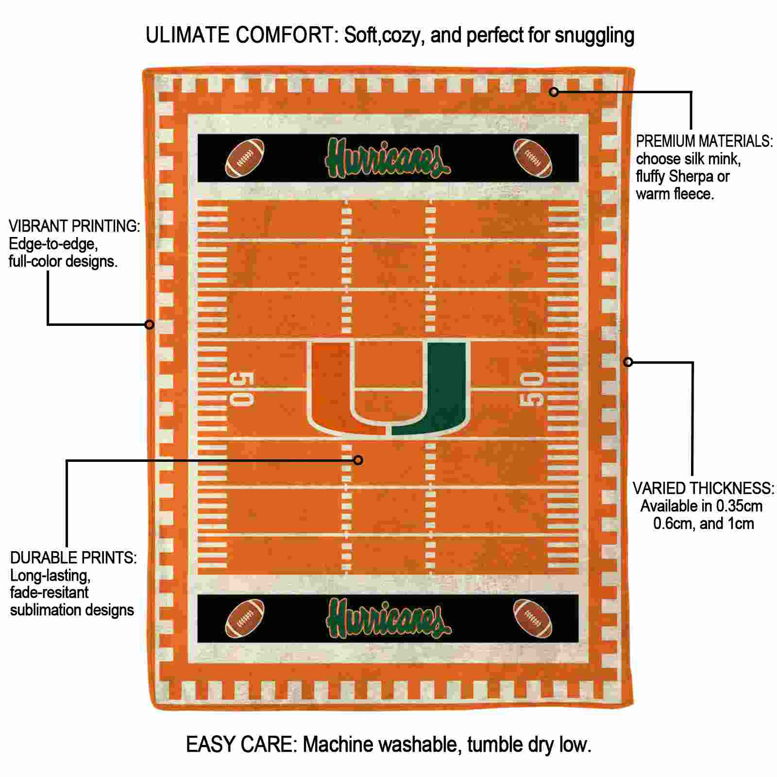 Without a doubt, the Miami Hurricanes Football Field Orange Blanket from Miami Hurricanes Blankets collection is offering true fans a chance to showcase passion in a cool way. Personalize it with your favorite team’s logo or a meaningful name to make it uniquely yours. Isn’t that great? The full-color print ensures vibrant, edge-to-edge designs, bringing your sports enthusiasm to life!
