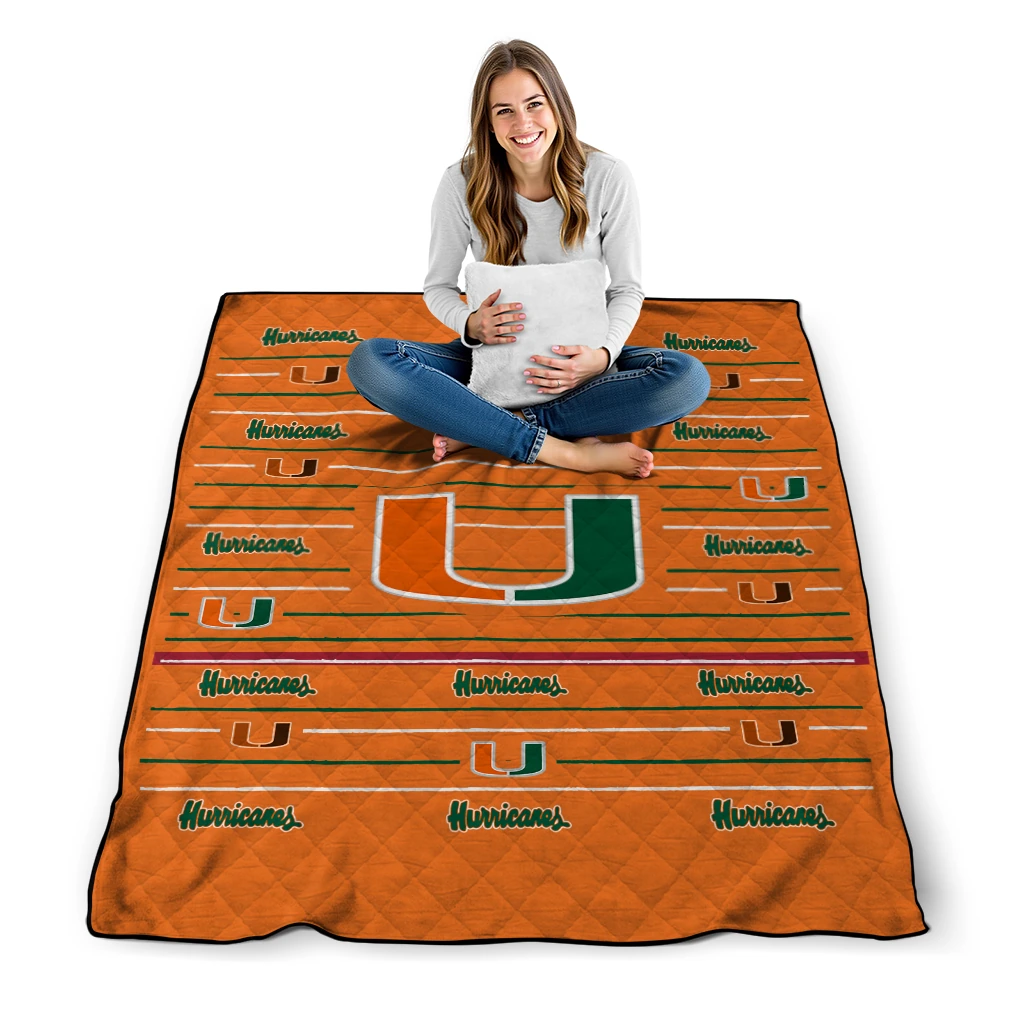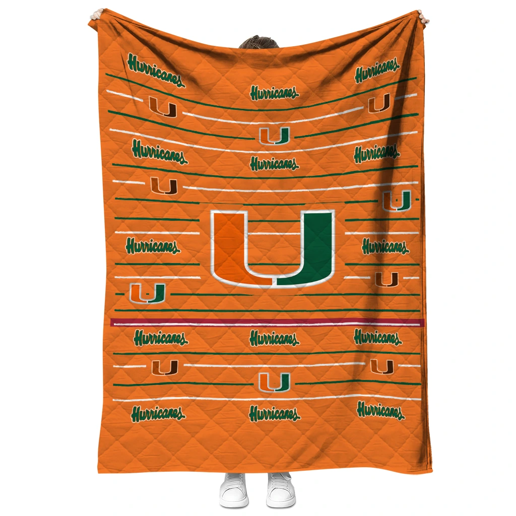 Wrap yourself in warmth and pride with the Miami Hurricanes Handdrawn Stripes Orange Quilt Blanket from the Miami Hurricanes Blankets collection at Yes That Blanket. Made from 100% premium quilting-weight polyester blended with a touch of microfiber, this quilt offers a smooth, soft finish you’ll love. Choose between two quilting styles—Stipple or Diagonal—and enjoy the comfort of a cotton-filled layer inside that adds extra coziness for every season. The border is available in classic black or white, giving your design a clean, timeless edge.