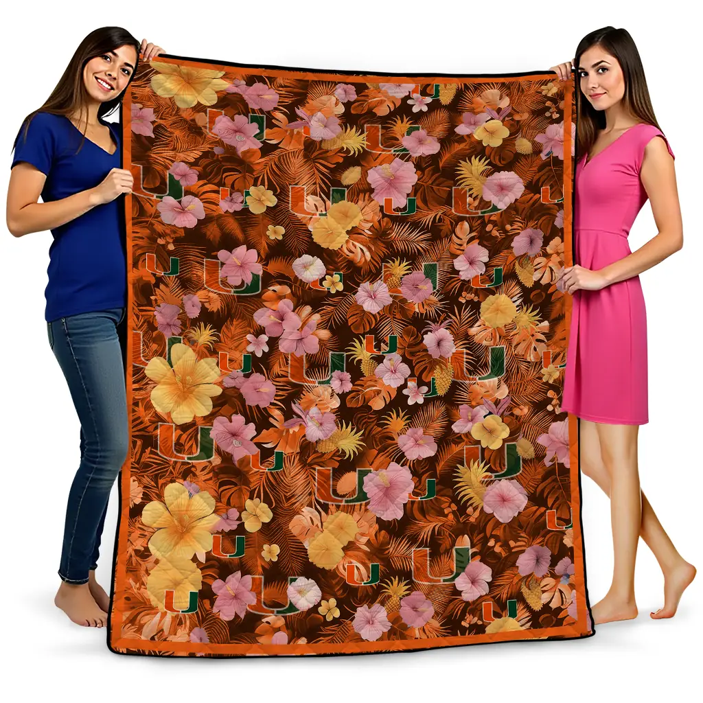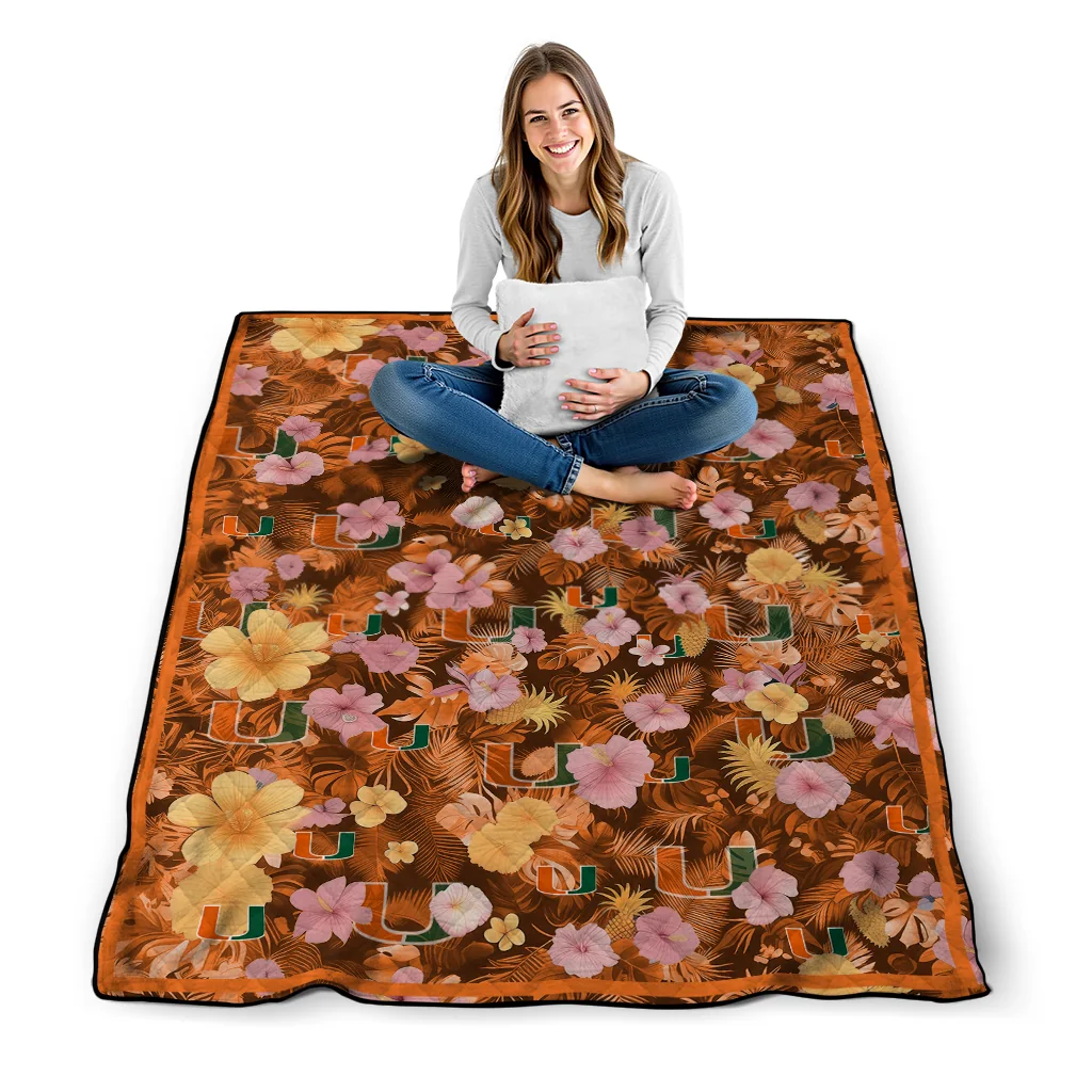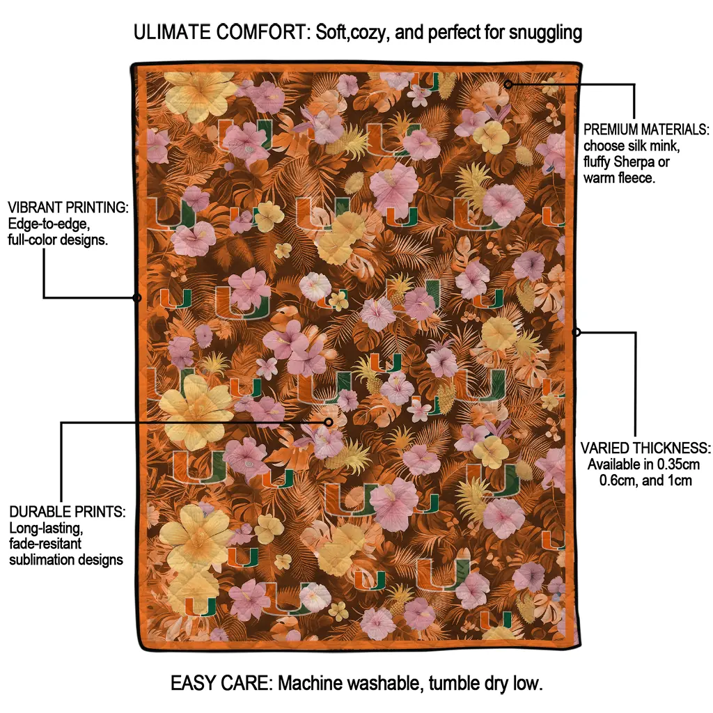 Wrap yourself in warmth and pride with the Miami Hurricanes Hibiscus Foliage Orange Quilt Blanket from the Miami Hurricanes Blankets collection at Yes That Blanket. Made from 100% premium quilting-weight polyester blended with a touch of microfiber, this quilt offers a smooth, soft finish you’ll love. Choose between two quilting styles—Stipple or Diagonal—and enjoy the comfort of a cotton-filled layer inside that adds extra coziness for every season. The border is available in classic black or white, giving your design a clean, timeless edge.