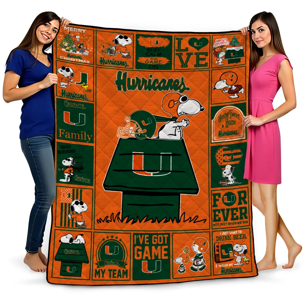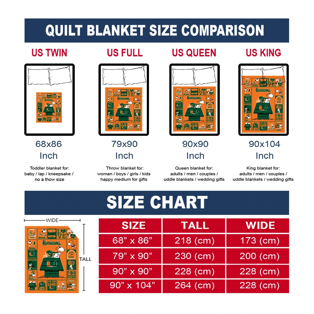 Wrap yourself in warmth and pride with the Miami Hurricanes Snoopy Love Orange Quilt Blanket from the Miami Hurricanes Blankets collection at Yes That Blanket. Made from 100% premium quilting-weight polyester blended with a touch of microfiber, this quilt offers a smooth, soft finish you’ll love. Choose between two quilting styles—Stipple or Diagonal—and enjoy the comfort of a cotton-filled layer inside that adds extra coziness for every season. The border is available in classic black or white, giving your design a clean, timeless edge.