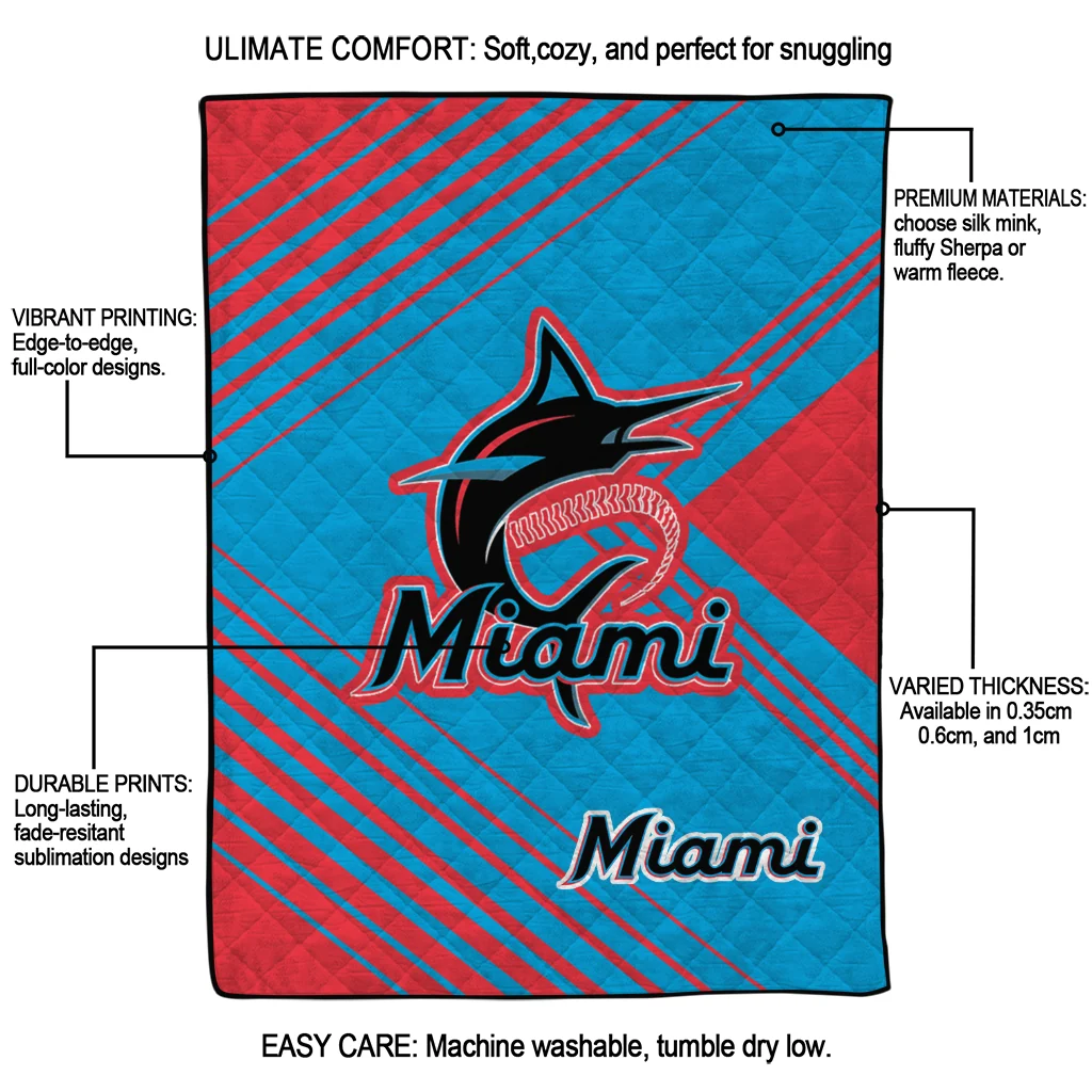Miami Marlins Arrow Layers Blue Quilt Blanket