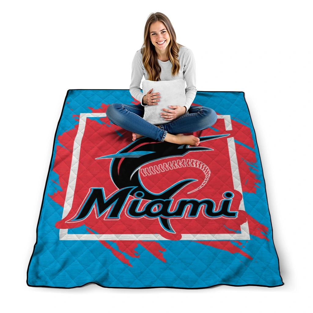 Be the first to review “Miami Marlins Block Border Blue Quilt Blanket”