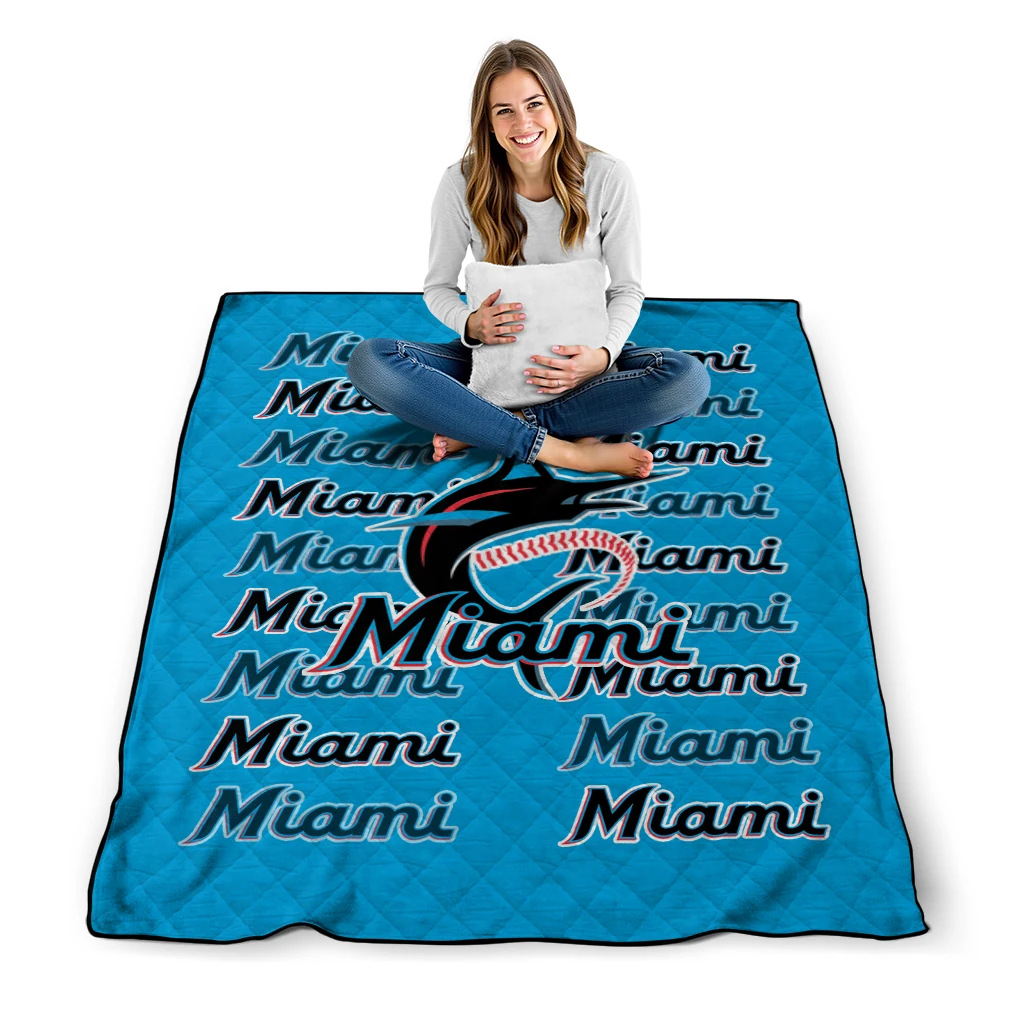 Wrap yourself in warmth and pride with the Miami Marlins Bold Red Blue Quilt Blanket from the Miami Marlins Blankets collection at Yes That Blanket. Made from 100% premium quilting-weight polyester blended with a touch of microfiber, this quilt offers a smooth, soft finish you’ll love. Choose between two quilting styles—Stipple or Diagonal—and enjoy the comfort of a cotton-filled layer inside that adds extra coziness for every season. The border is available in classic black or white, giving your design a clean, timeless edge.