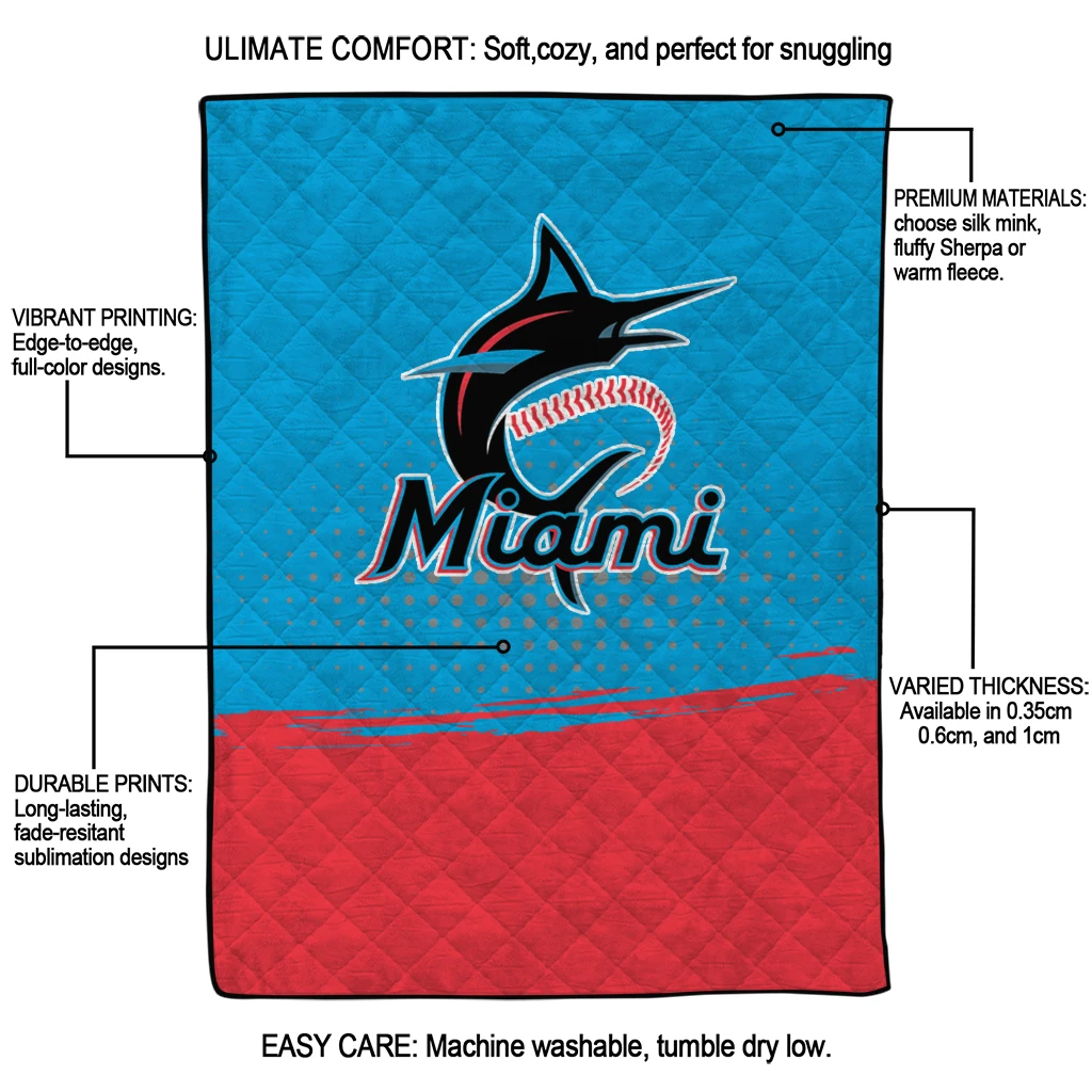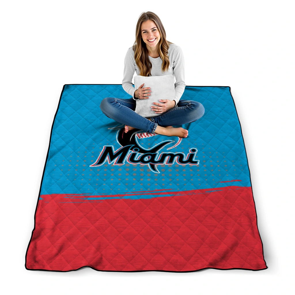 The Miami Marlins Dot Illusion Blue Quilt Blanket is more than a blanket—it’s everyday comfort, thoughtfully made. Crafted from premium quilting fabric with a soft microfiber touch, it offers a smooth hand-feel and lasting coziness. Layered quilting with a cotton-filled core provides adaptable warmth across seasons while maintaining a clean, tailored look on your bed or sofa.